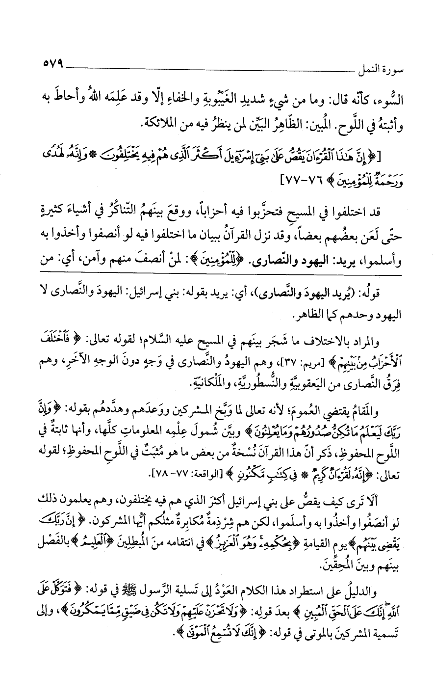 [(إِنَّ هذَا الْقُرْآنَ يَقُصُّ عَلى بَنِي إِسْرائِيلَ أَكْثَرَ الَّذِي هُمْ فِيهِ يَخْتَلِفُونَ (76) وَإِنَّهُ لَهُدىً وَرَحْمَةٌ لِلْمُؤْمِنِينَ)].