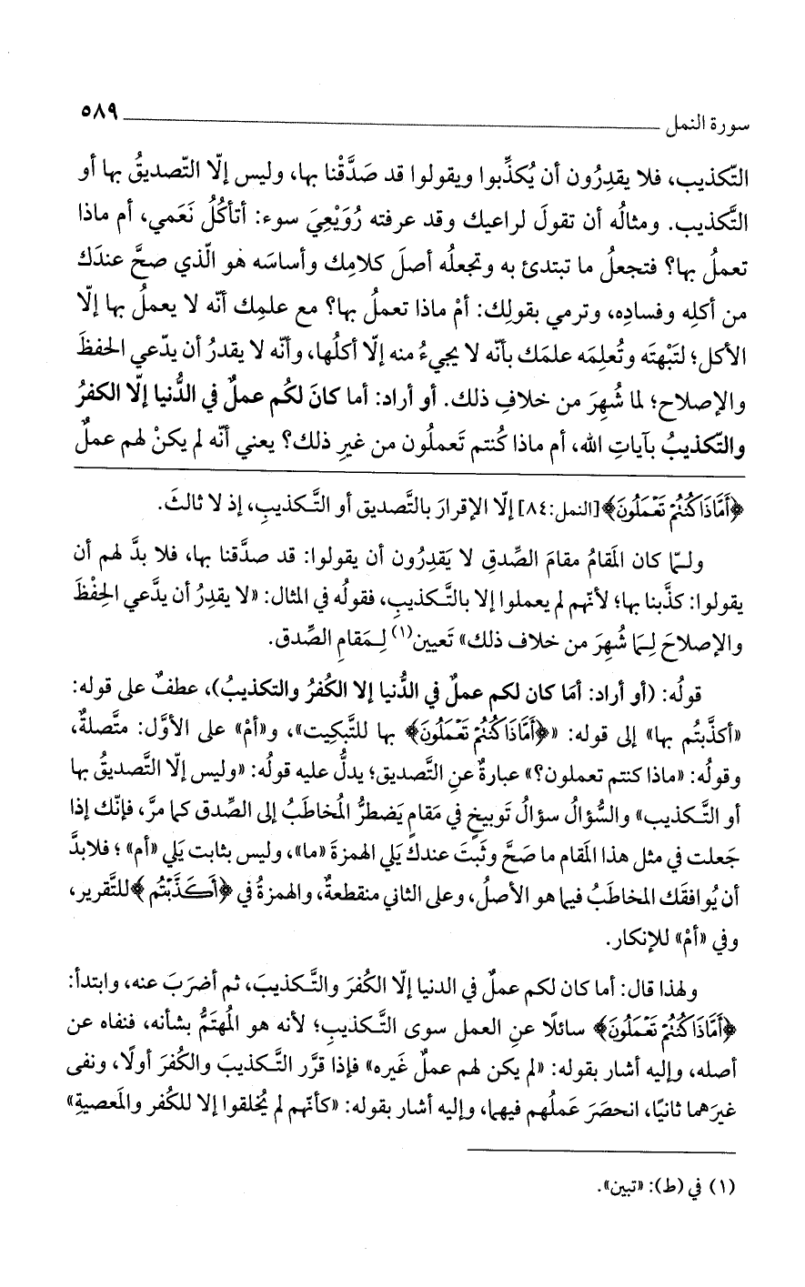{أمَاذَا كُنْتُمْ تَعْمَلُونَ} [النمل: 84] إلا الإقرار بالتصديق أو التكذيب، إذ لا ثالث.