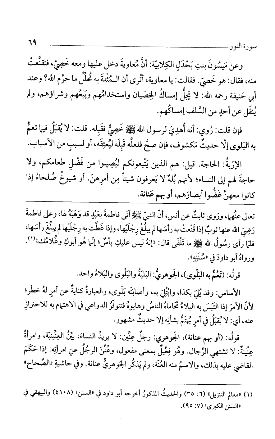 فإن قلت: روي: أنه أهدى لرسول الله - صلى الله عليه وسلم - خصيٌ فقبله. قلت: لا يقبل فيما تعم به البلوى إلا حديثٌ مكشوف، فإن صح فلعله قبله ليعتقه، أو لسببٍ من الأسباب.