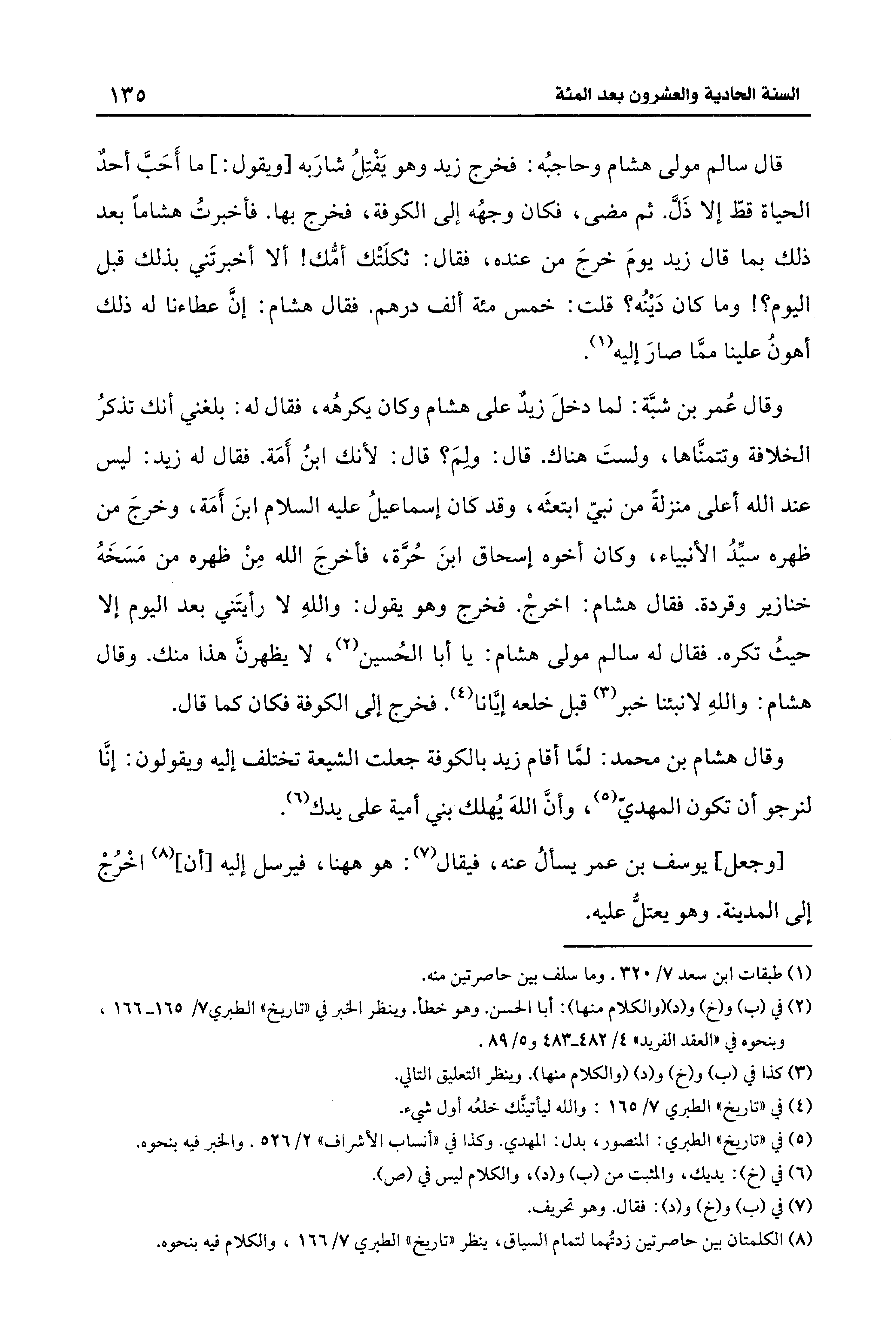 (¬8) الكلمتان بين حاصرتين زدتُهما لتمام السياق، ينظر "تاريخ" الطبري 7/ 166، والكلام فيه بنحوه.