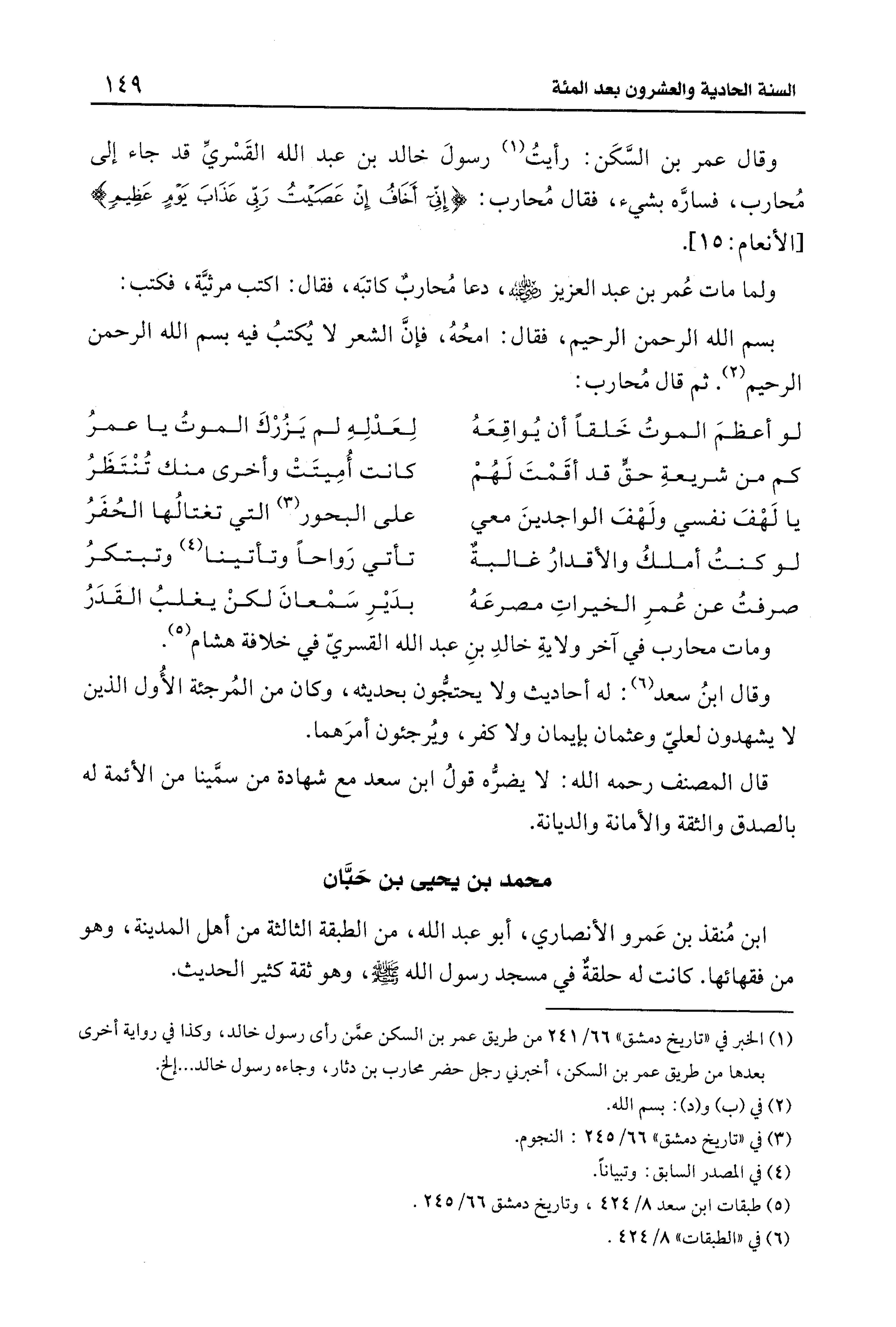 (¬5) طبقات ابن سعد 8/ 424، وتاريخ دمشق 66/ 245.