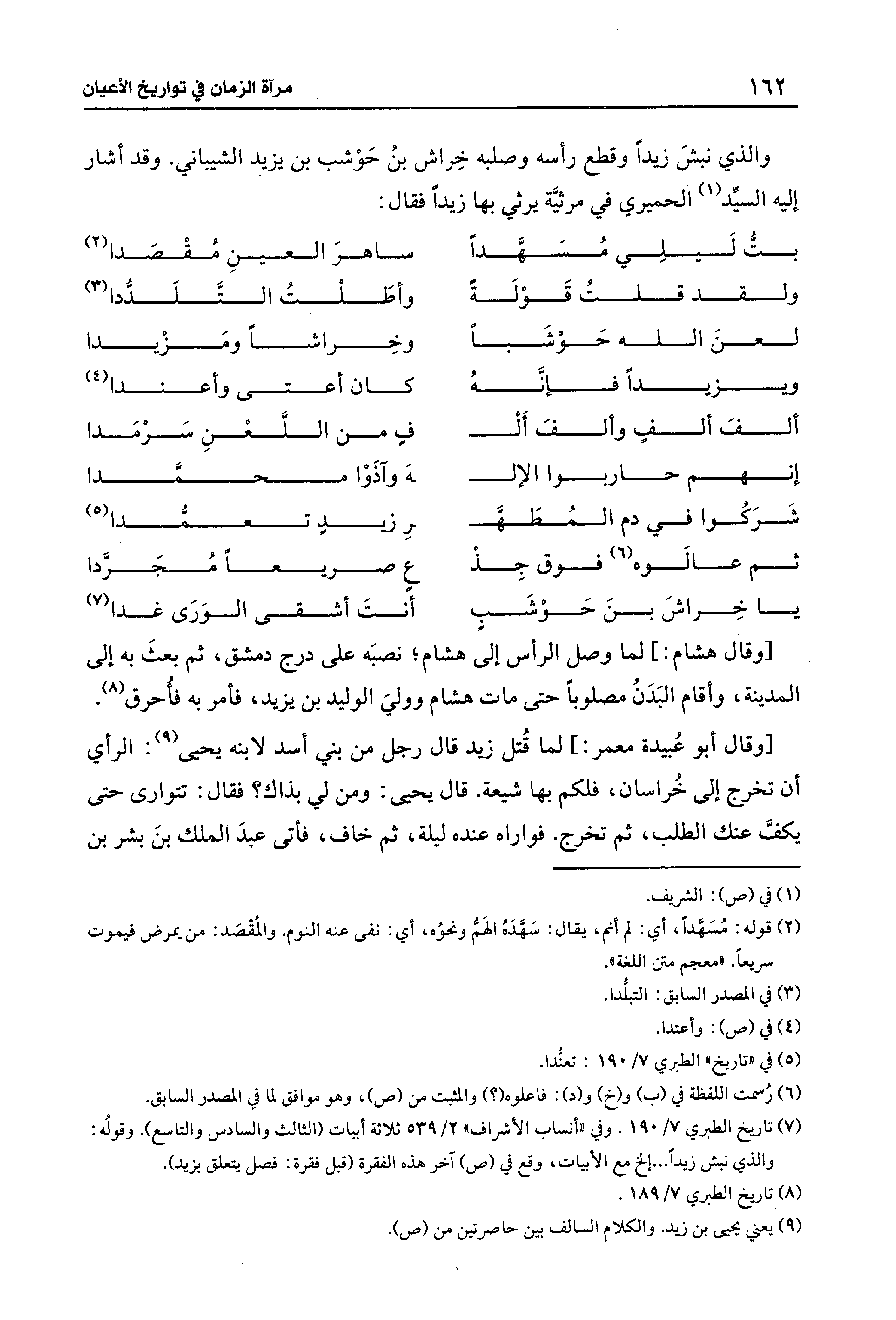 والذي نبشَ زيدًا وقطع رأسه وصلبه خِراش بنُ حَوْشب بن يزيد الشَّيبانِيّ. وقد أشار إليه السيِّد (¬1) الحميري في مرثيَّة يرثي بها زيدًا فقال: