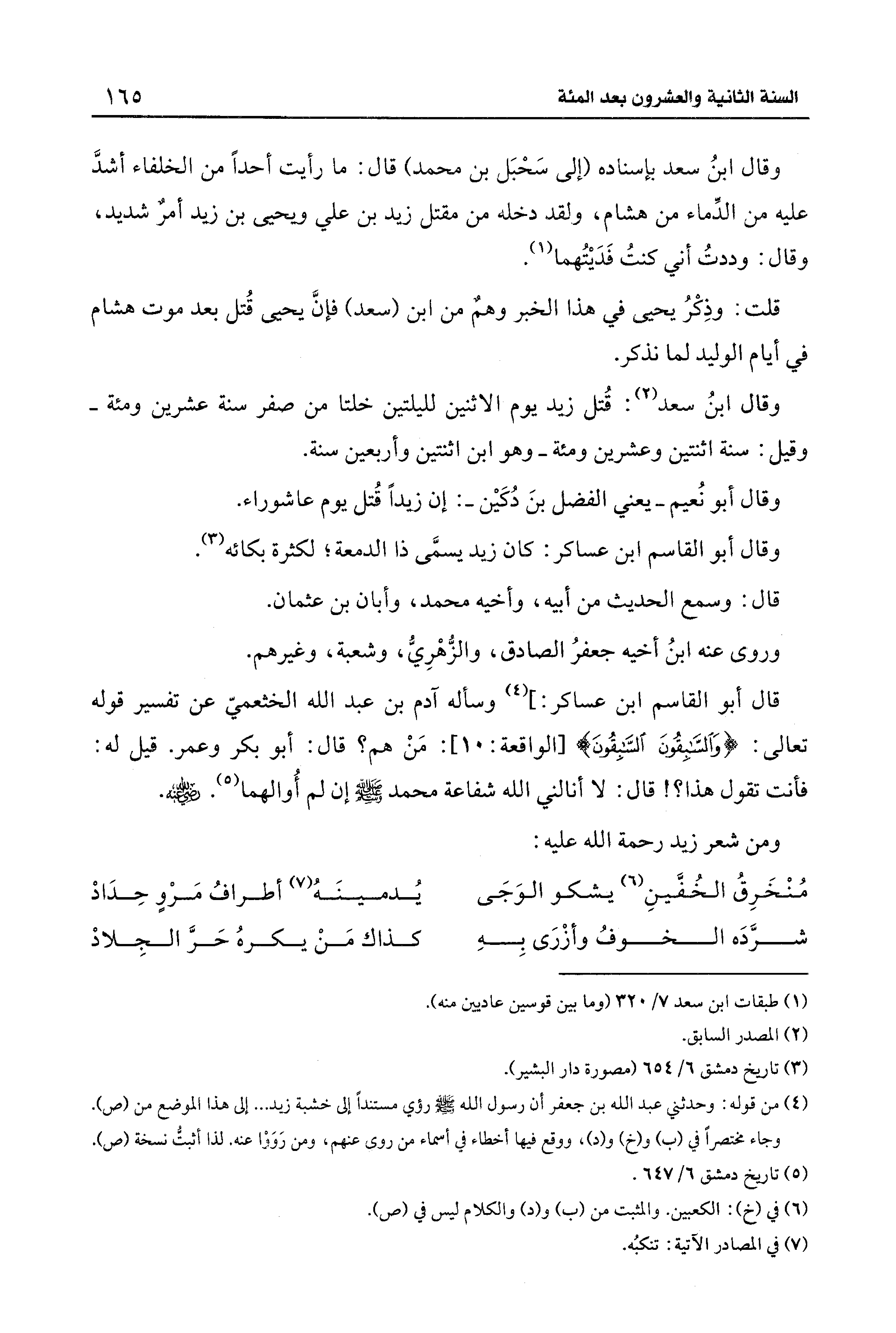 قلت: وذِكْرُ يحيى في هذا الحْبر وهمٌ من ابن (سعد) فإنَّ يحيى قُتل بعد موت هشام في أيام الوليد لما نذكر.