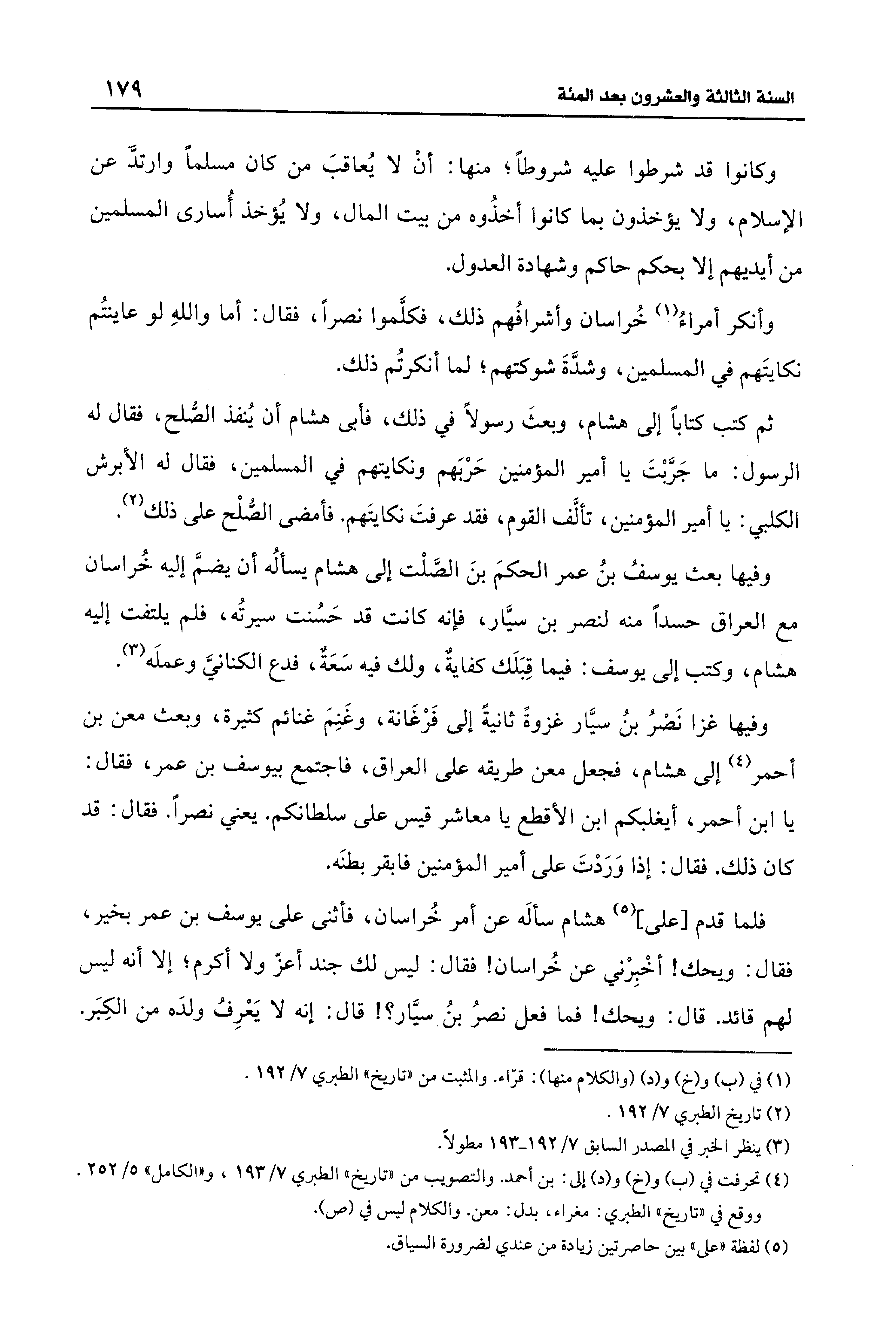 ثم كتب كتابًا إلى هشام، وبعثَ رسولًا في ذلك، فأبى هشام أن يُنفذ الصُّلح، فقال له الرسول: ما جَرَّبْتَ يَا أمير المُؤْمنين حَرْبَهم ونكايتهم في المسلمين، فقال له الأبرش الكلبي: يَا أمير المُؤْمنين، تألَّف القوم، فقد عرفتَ نكايتَهم. فأمضى الصُّلْح على ذلك (¬2).