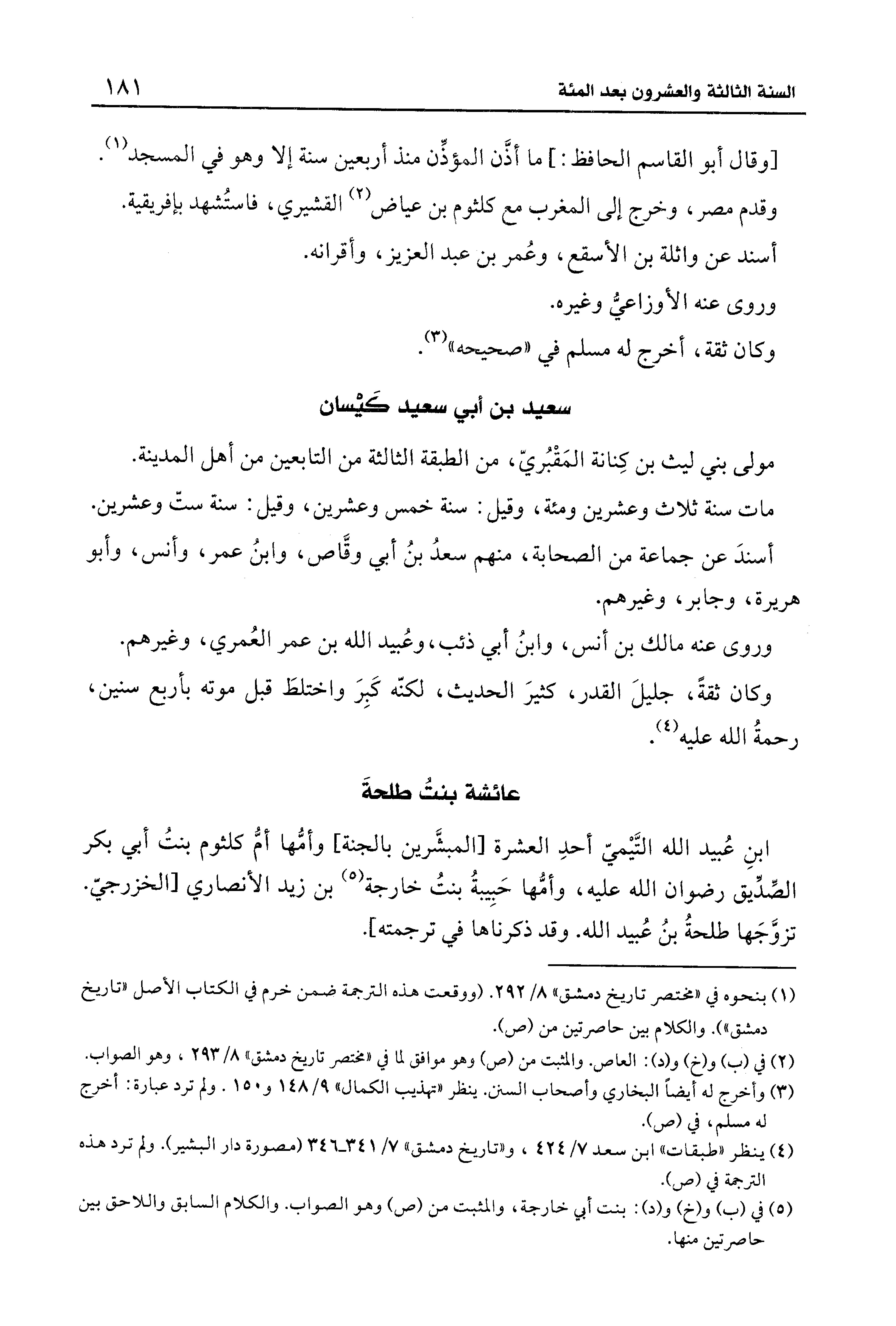 (¬4) ينظر "طبقات" ابن سعد 7/ 424، و"تاريخ دمشق" 7/ 341 - 346 (مصورة دار البشير). ولم ترد هذه الترجمة في (ص).
