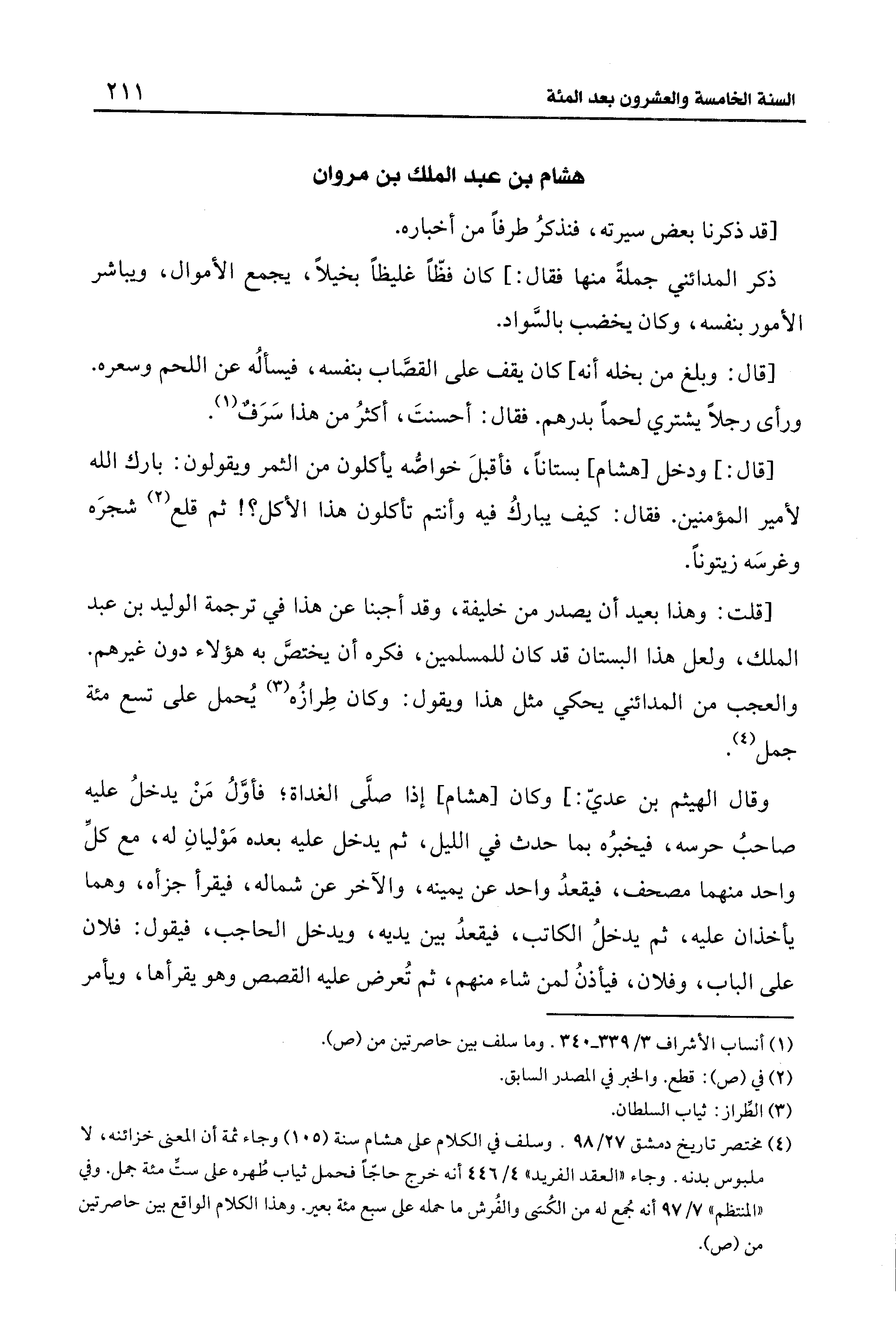 (¬4) مختصر تاريخ دمشق 27/ 98. وسلف في الكلام على هشام سنة (105) وجاء ثمة أن المعنى خزائنه، لا ملبوس بدنه. وجاء "العقد الفريد" 4/ 446 أنَّه خرج حاجًّا فحمل ثياب طُهره على ستِّ مئة جمل. وفي "المنتظم" 7/ 97 أنَّه جُمع له من الكُسَى والفُرش ما حمله على سبع مئة بعير. وهذا الكلام الواقع بين حاصرتين من (ص).