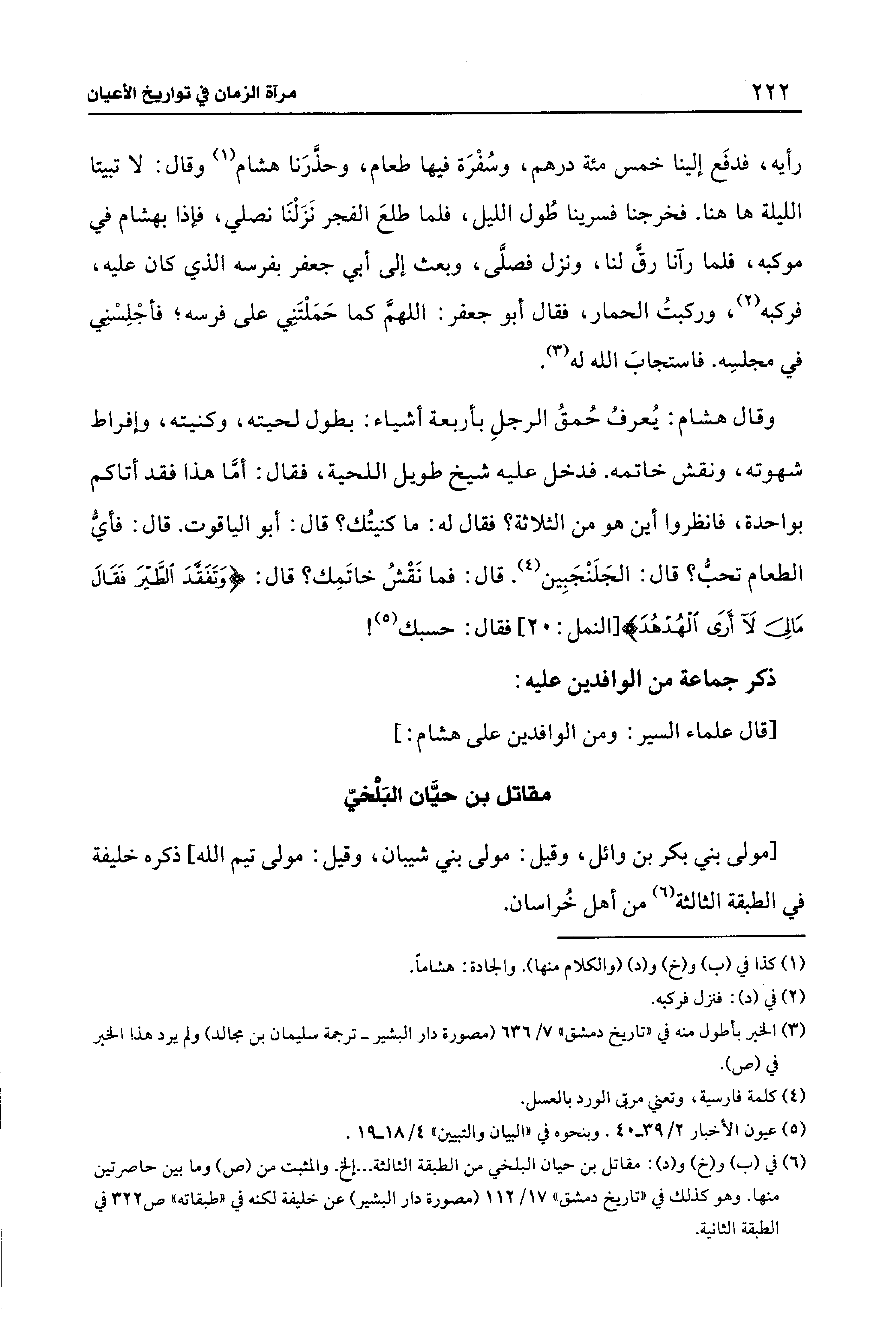 رأيه، فدفَع إلينا خمس مئة درهم، وسُفْرَة فيها طعام، وحذَّرَنا هشام (¬1) وقال: لا تبيتا الليلة ها هنا. فخرجنا فسرينا طُول الليل، فلما طلعَ الفجر نَزَلْنَا نصلي، فإذا بهشام في موكبه، فلما رآنا رقَّ لنا، ونزل فصلَّى، وبعث إلى أبي جعفر بفرسه الذي كان عليه، فركبه (¬2)، وركبتُ الحمار، فقال أبو جعفر: اللهمَّ كما حَمَلْتَنِي على فرسه؛ فأجْلِسْنِي في مجلسِه. فاستجابَ الله له (¬3).