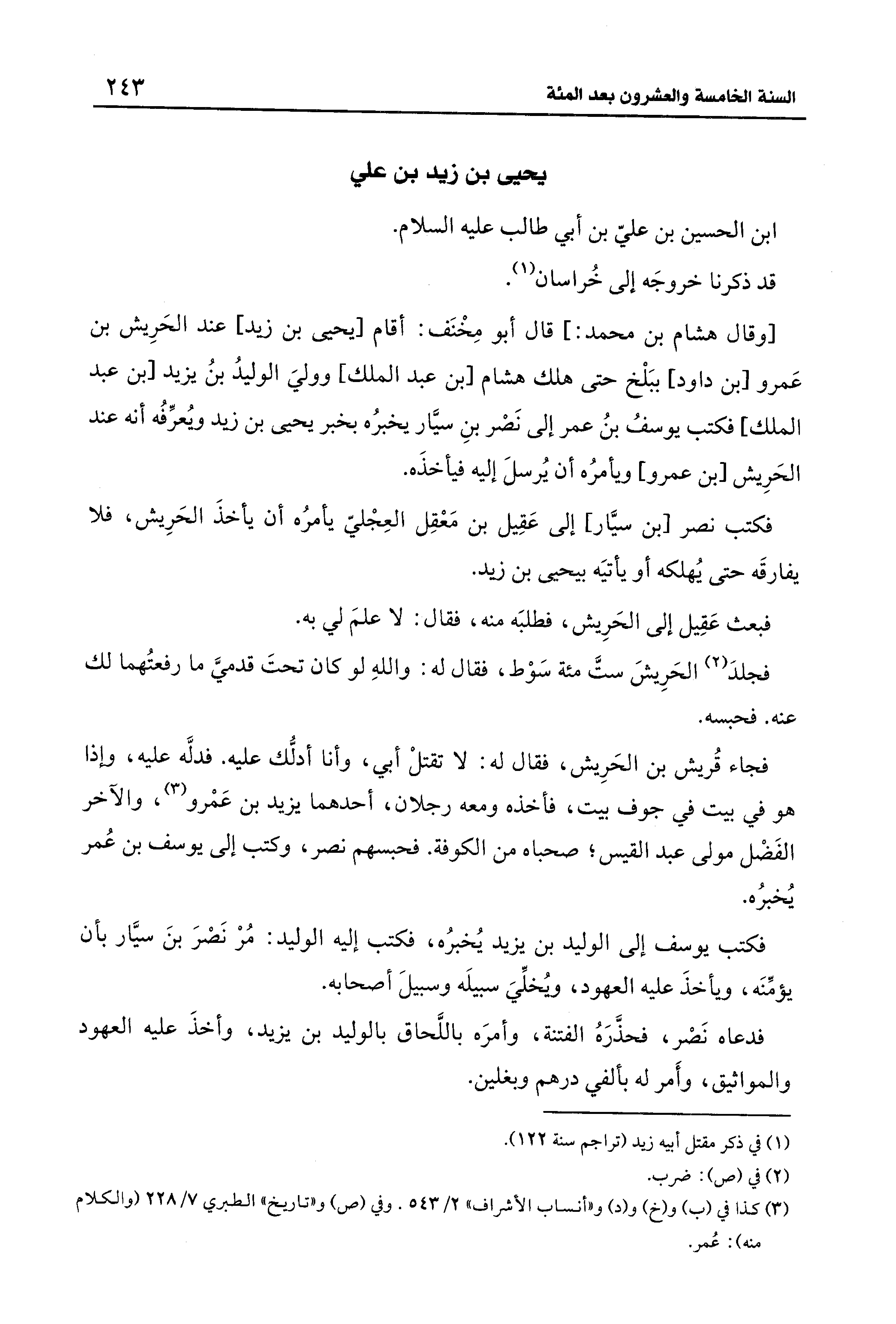 (¬1) في ذكر مقتل أَبيه زيد (تراجم سنة 122).