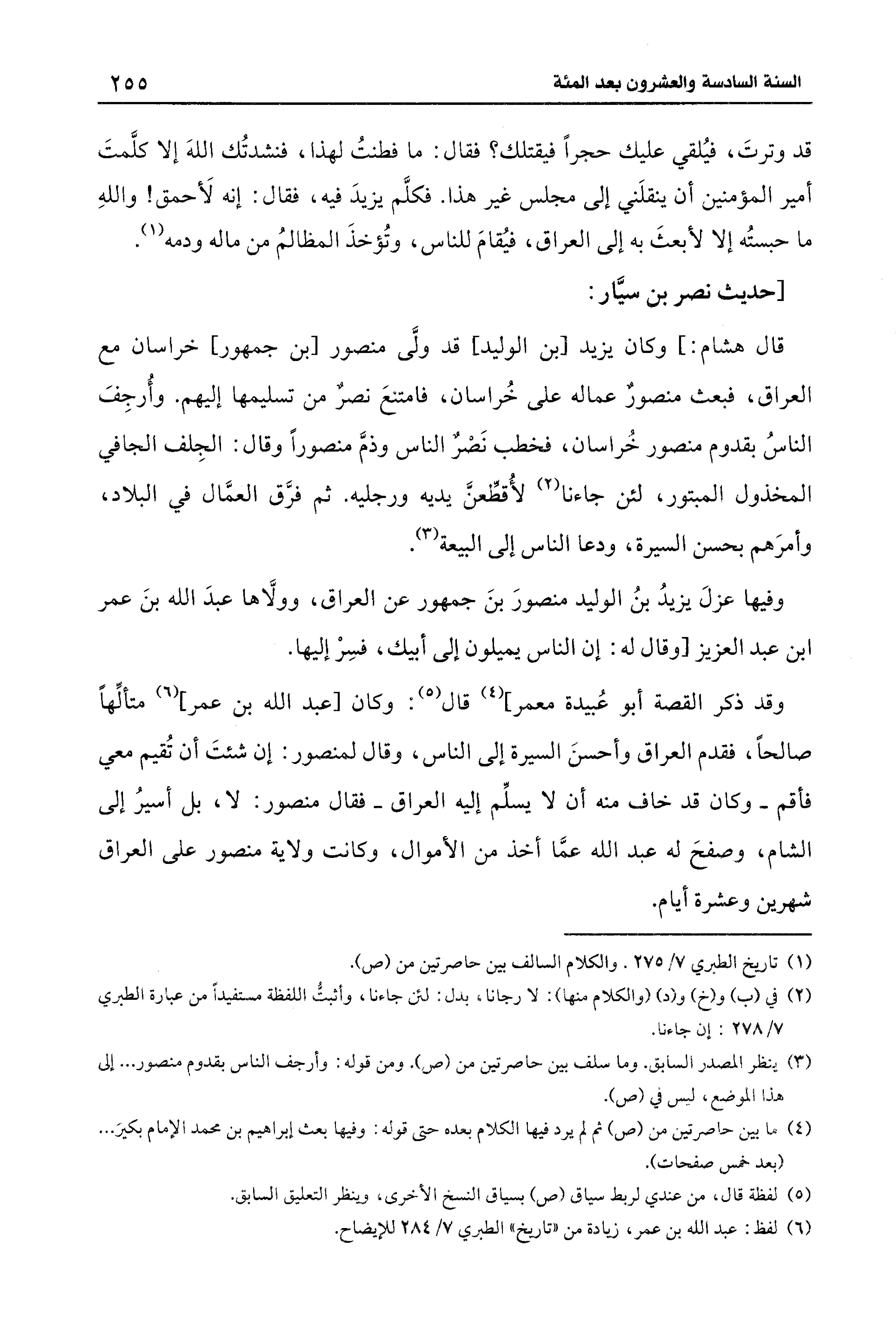 (¬6) لفظ: عبد الله بن عمر، زيادة من "تاريخ" الطبري 7/ 284 للإيضاح.