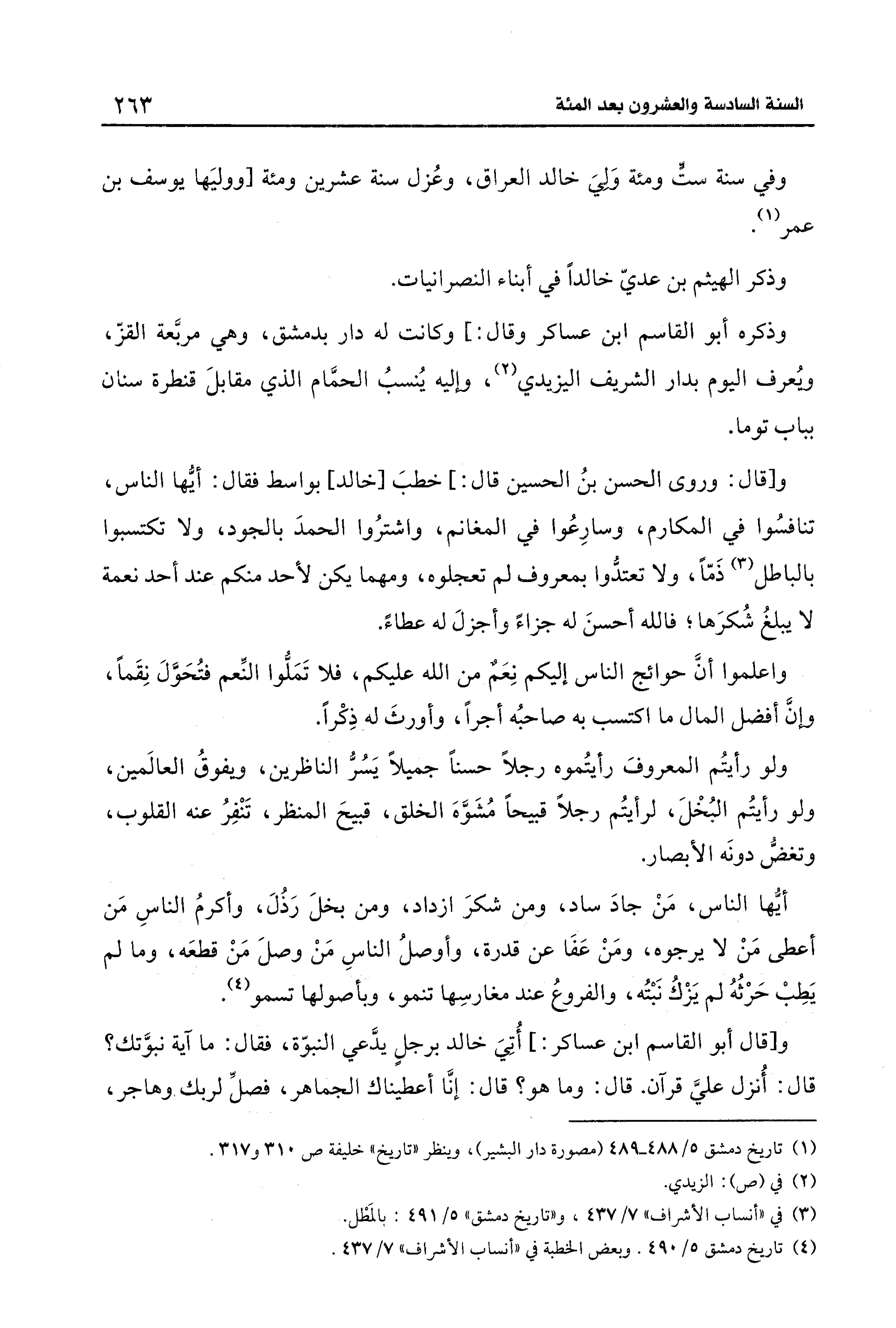 (¬4) تاريخ دمشق 5/ 490. وبعض الخطبة في "أنساب الأشراف" 7/ 437.