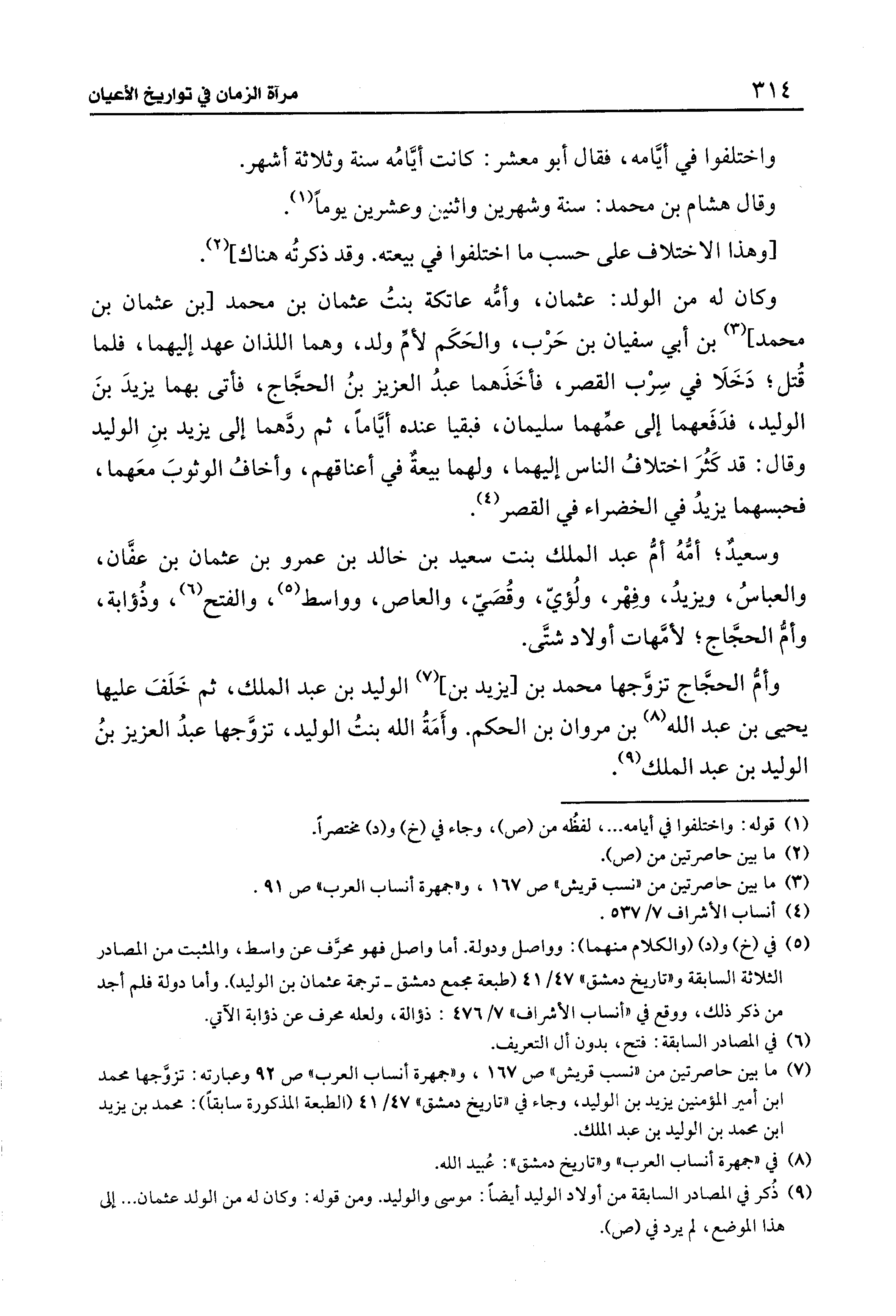 (¬9) ذُكر في المصادر السابقة من أولاد الوليد أيضًا: موسى والوليد. ومن قوله: وكان له من الولد عثمان ... إلى هذا الموضع، لم يرد في (ص).