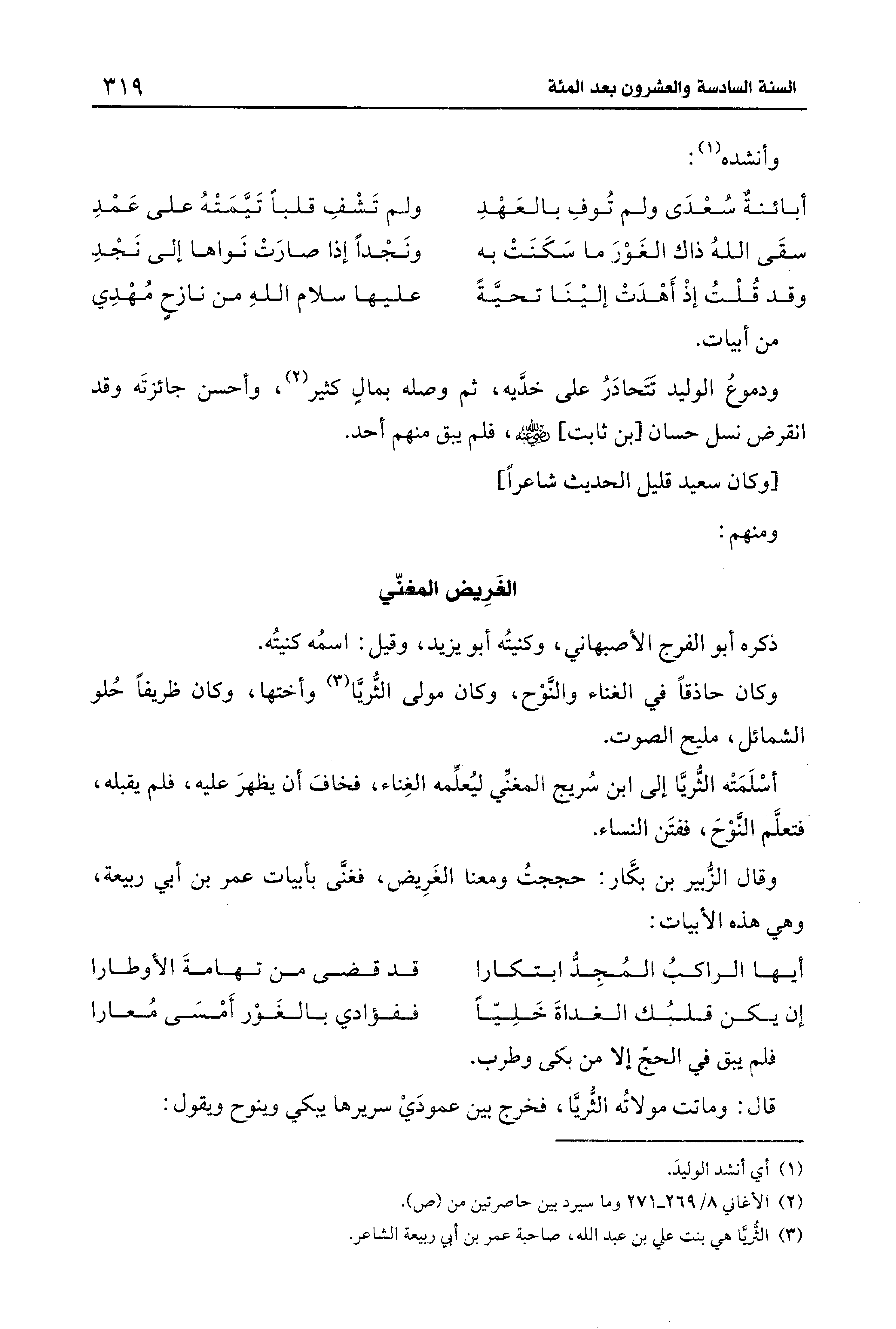 (¬3) الثُّريَّا هي بنت علي بن عبد الله، صاحبة عمر بن أبي ربيعة الشاعر.