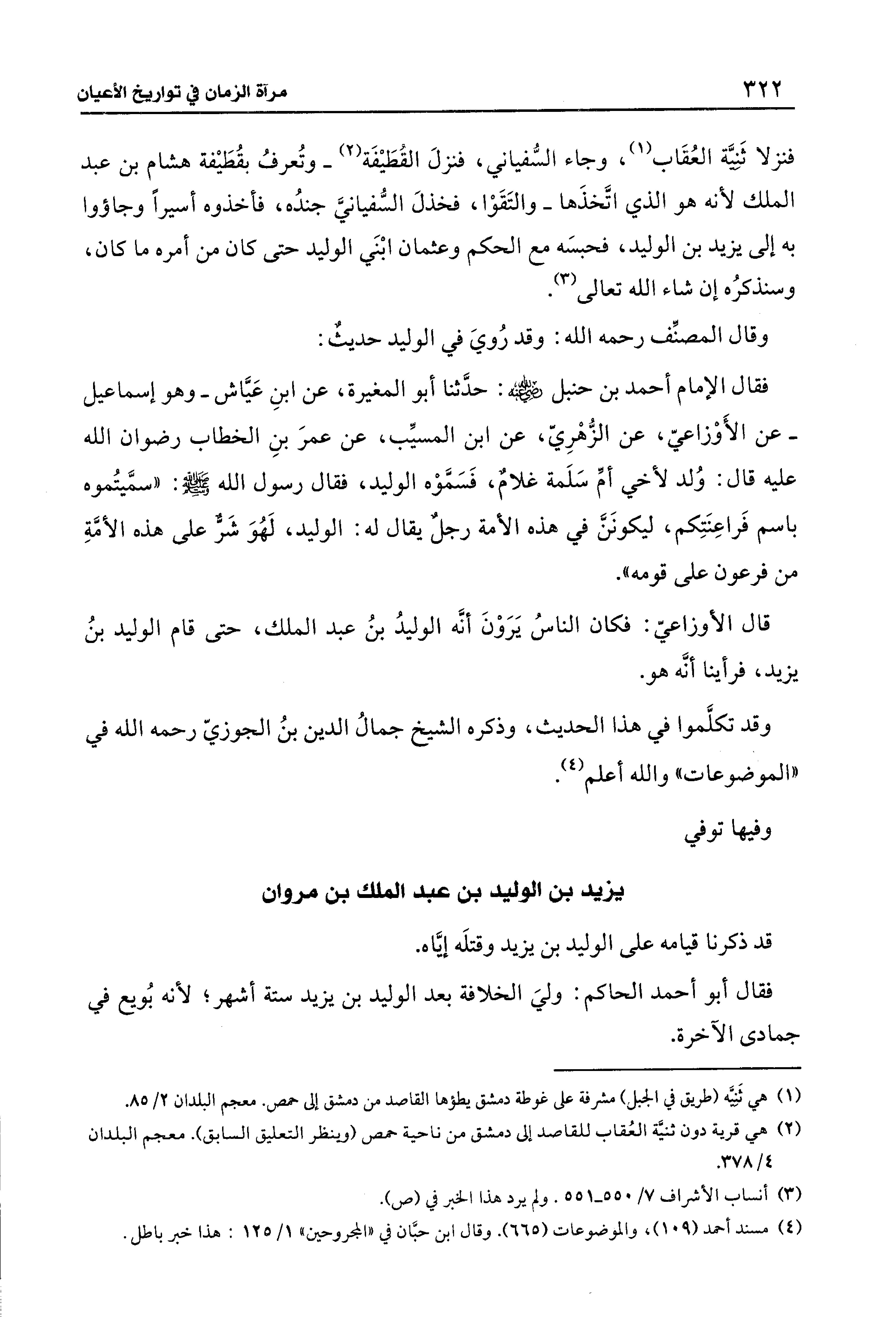 قال الأوزاعيّ: فكان الناسُ يَرَوْنَ أنَّه الوليدُ بنُ عبد الملك، حتى قام الوليد بنُ يزيد، فرأينا أنَّه هو.