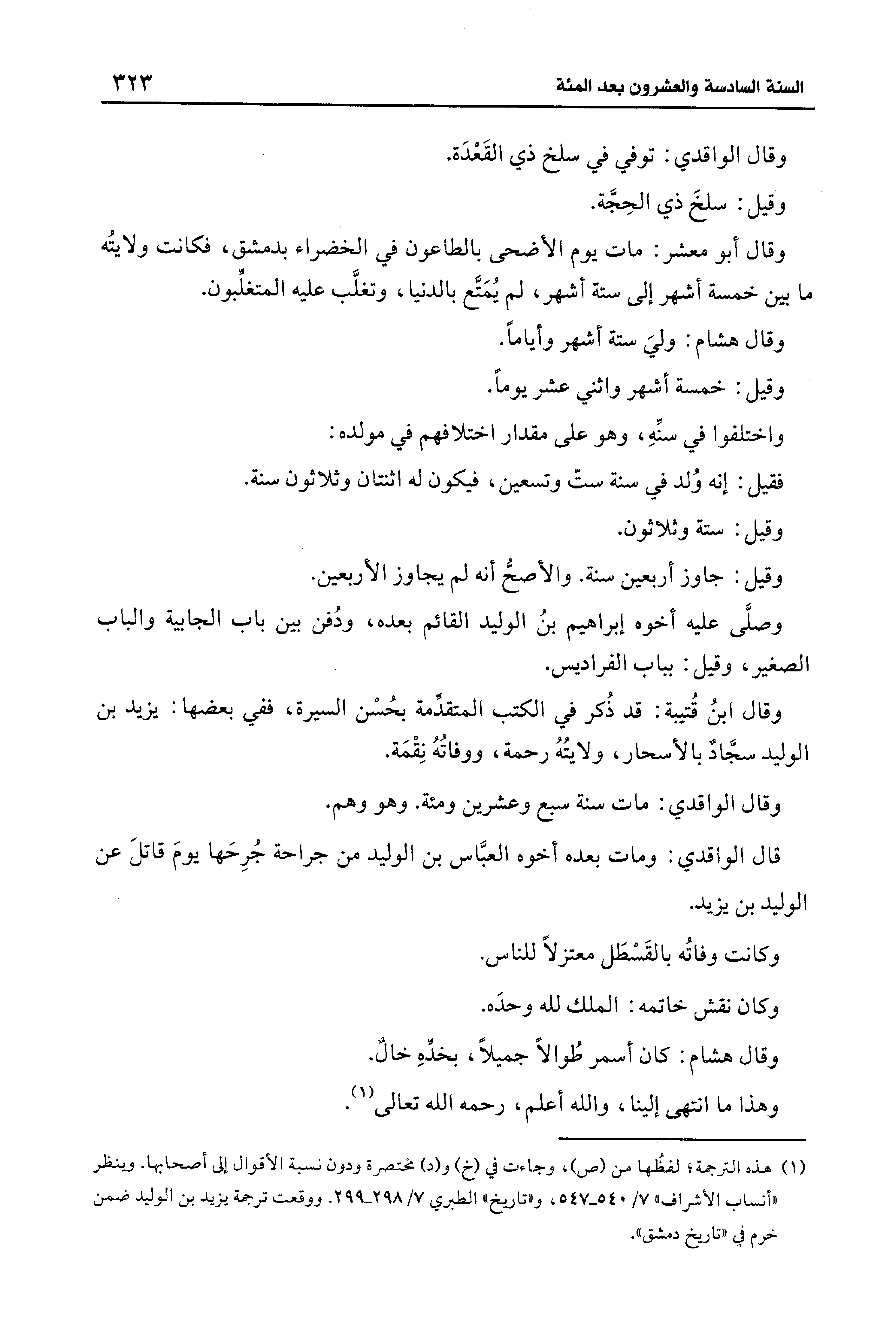 (¬1) هذه الترجمة؛ لفظُها من (ص)، وجاءت في (خ) و (د) مختصرة ودون نسبة الأقوال إلى أصحابها. وينظر "أنساب الأشراف" 7/ 540 - 547، و"تاريخ" الطبري 7/ 298 - 299. ووقعت ترجمة يزيد بن الوليد ضمن خرم في "تاريخ دمشق".