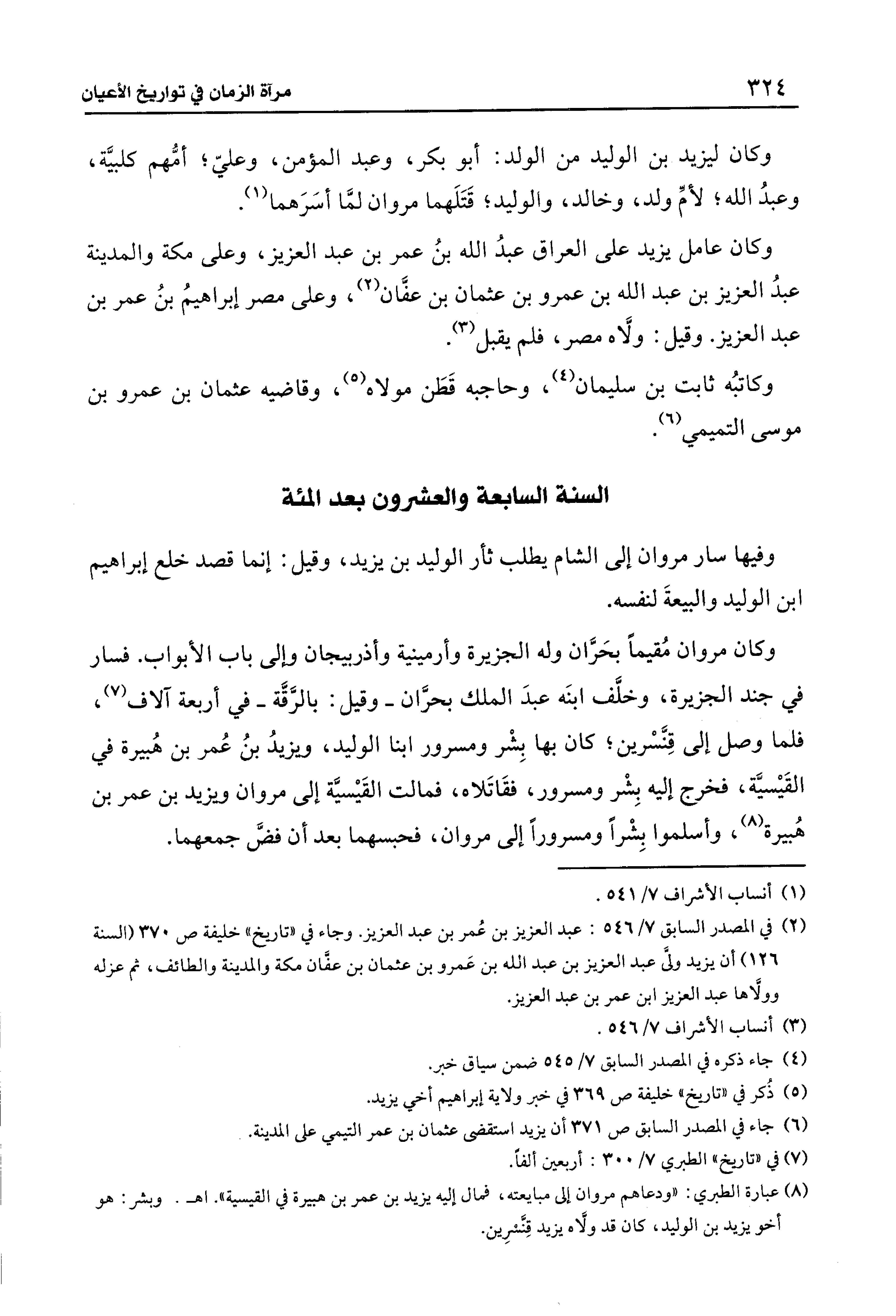 (¬8) عبارة الطبري: "ودعاهم مروان إلى مبايعته، فمال إليه يزيد بن عمر بن هبيرة في القيسية". اهـ. وبشر: هو أخو يزيد بن الوليد، كان قد ولَّاه يزيد قِنَسْرِين.