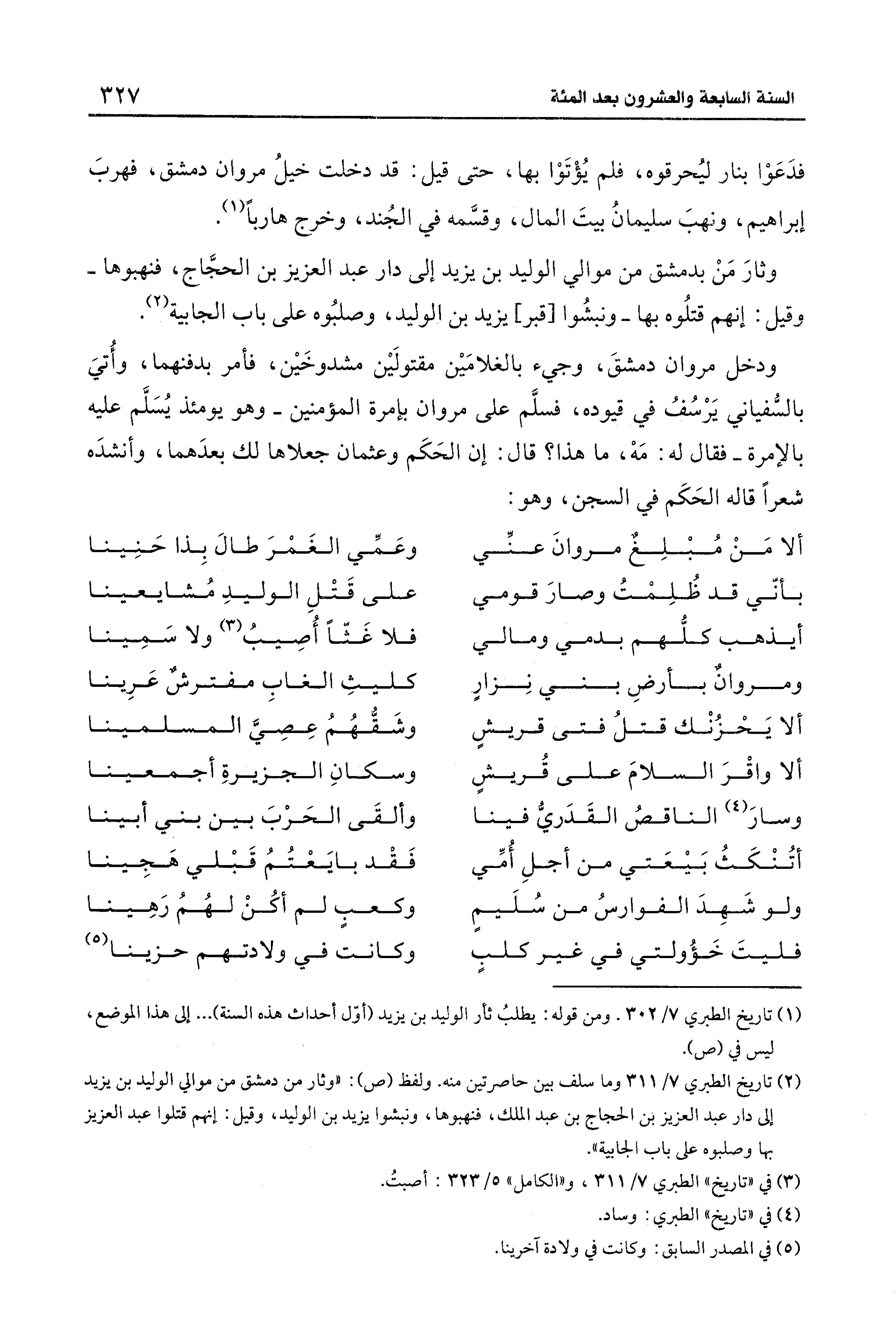 (¬1) تاريخ الطبري 7/ 302. ومن قوله: يطلبُ ثأر الوليد بن يزيد (أوّل أحداث هذه السنة) ... إلى هذا الموضع، ليس في (ص).