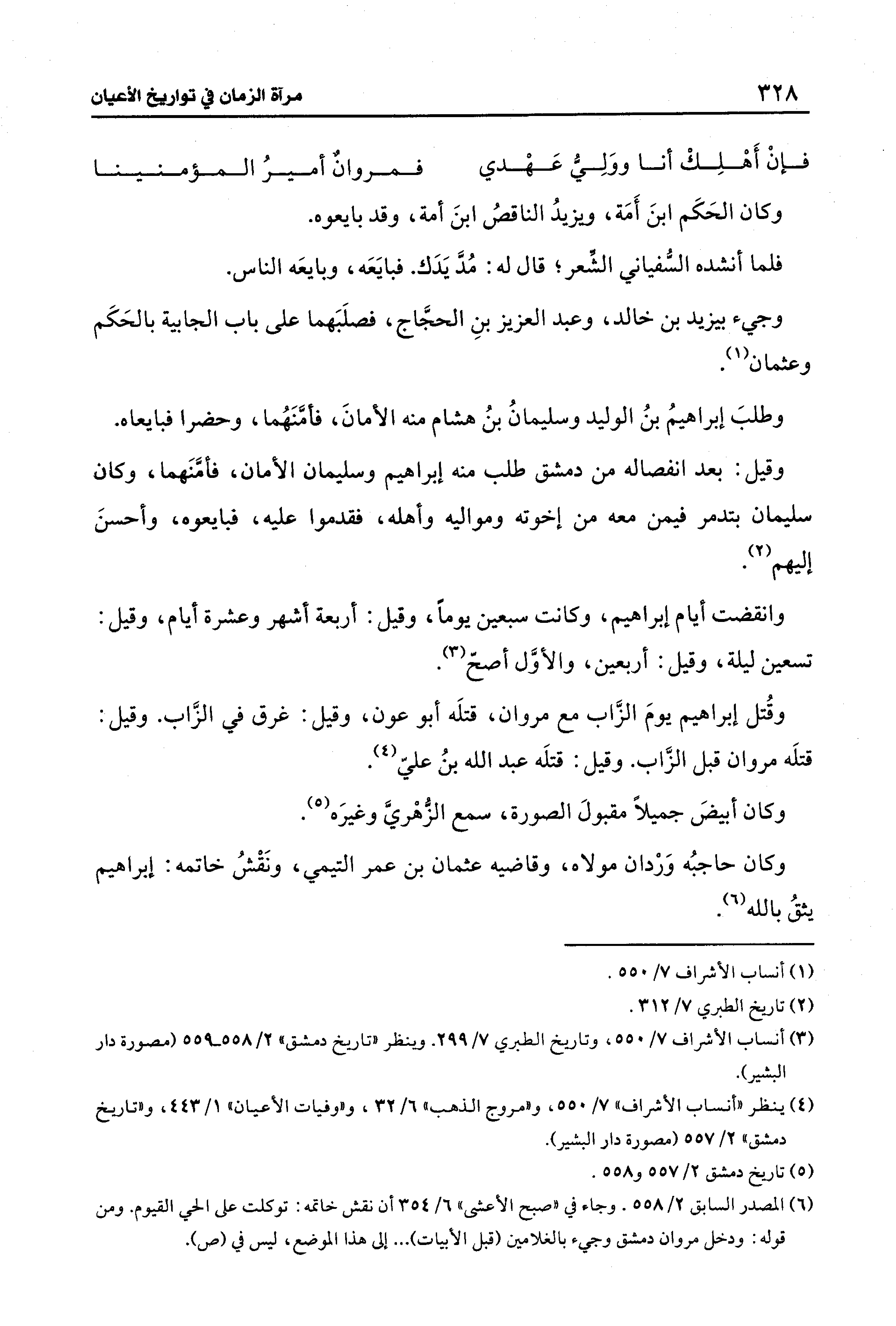 (¬4) ينظر "أنساب الأشراف" 7/ 550، و "مروج الذهب" 6/ 32، و"وفيات الأعيان" 1/ 443، و"تاريخ دمشق" 2/ 557 (مصورة دار البشير).