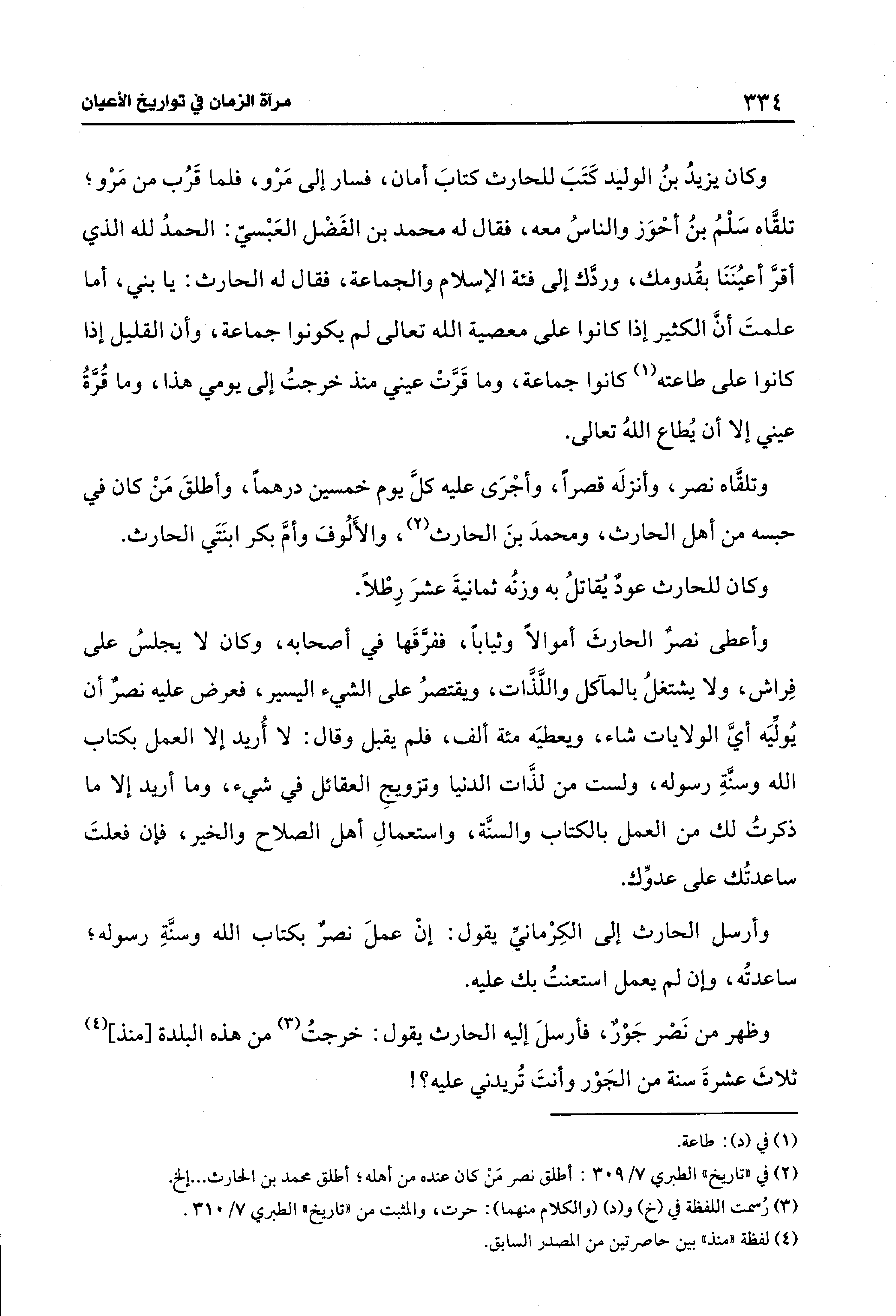 وظهر من نَصْر جَوْرٌ، فأرسلَ إليه الحارث يقول: خرجتُ (¬3) من هذه البلدة [منذ] (¬4) ثلاثَ عشرةَ سنة من الجَوْر وأنتَ تُريدني عليه؟ !