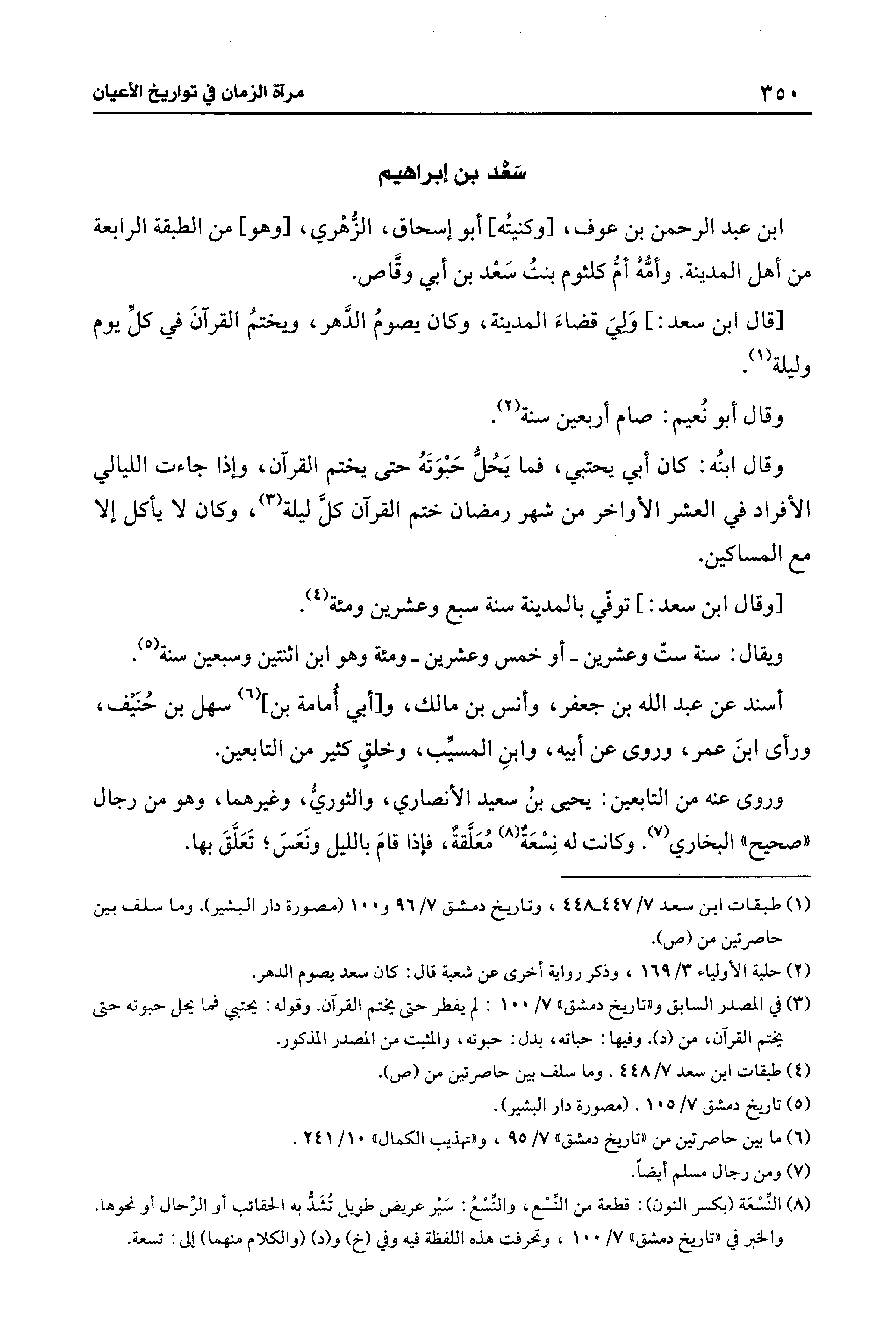 وروى عنه من التابعين: يحيى بنُ سعيد الأنصاري، والثوريُّ، وغيرهما، وهو من رجال "صحيح" البخاري (¬7). وكانت له نِسْعَةٌ (¬8) مُعَلَّقةٌ، فإذا قامَ بالليل ونَعَسَ؛ تَعَلَّقَ بها.