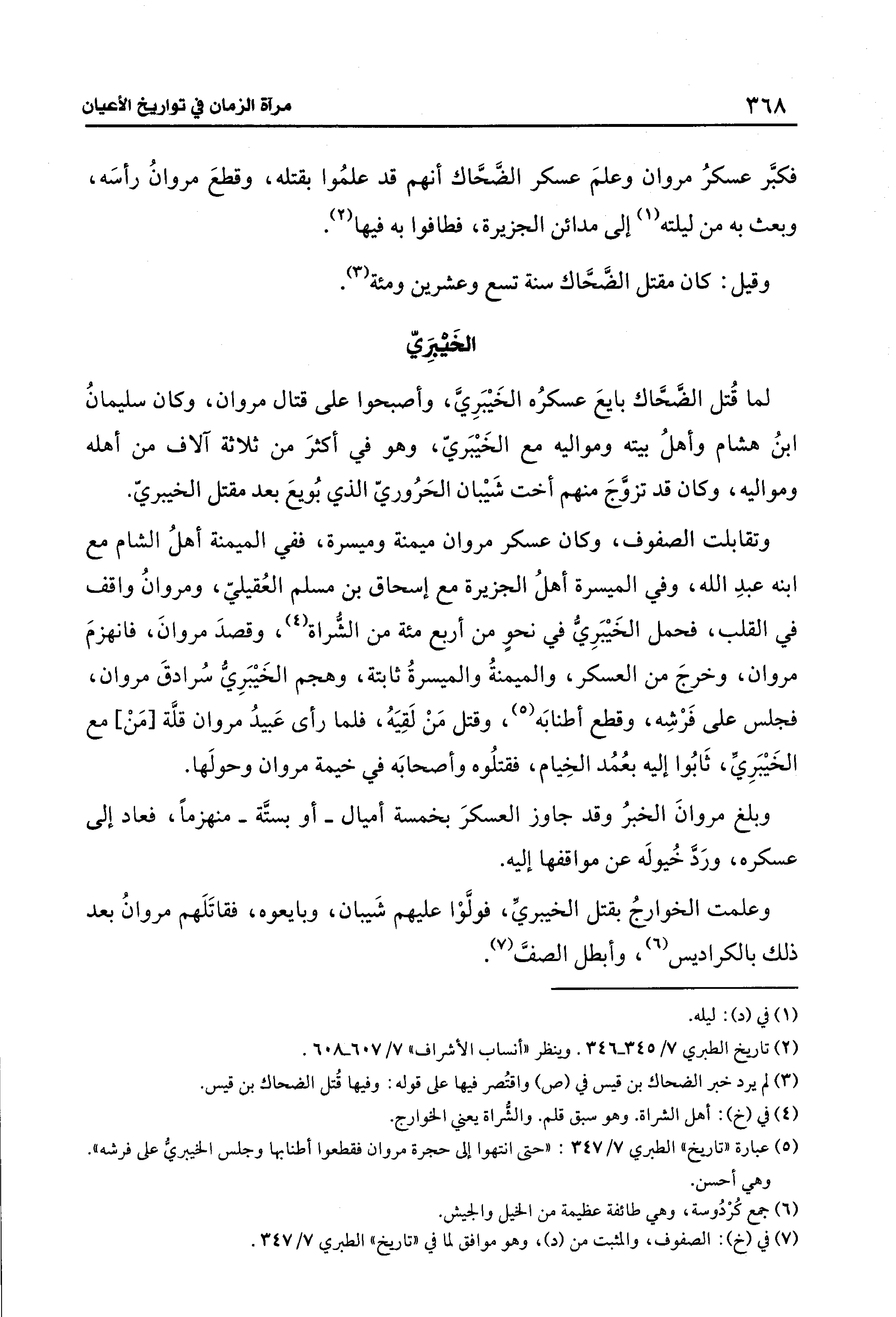 وعلمت الخوارجُ بقتل الخيبريِّ، فولَّوْا عليهم شَيبان، وبايعوه، فقاتَلَهم مروانُ بعد ذلك بالكراديس (¬6)، وأبطل الصفَّ (¬7).