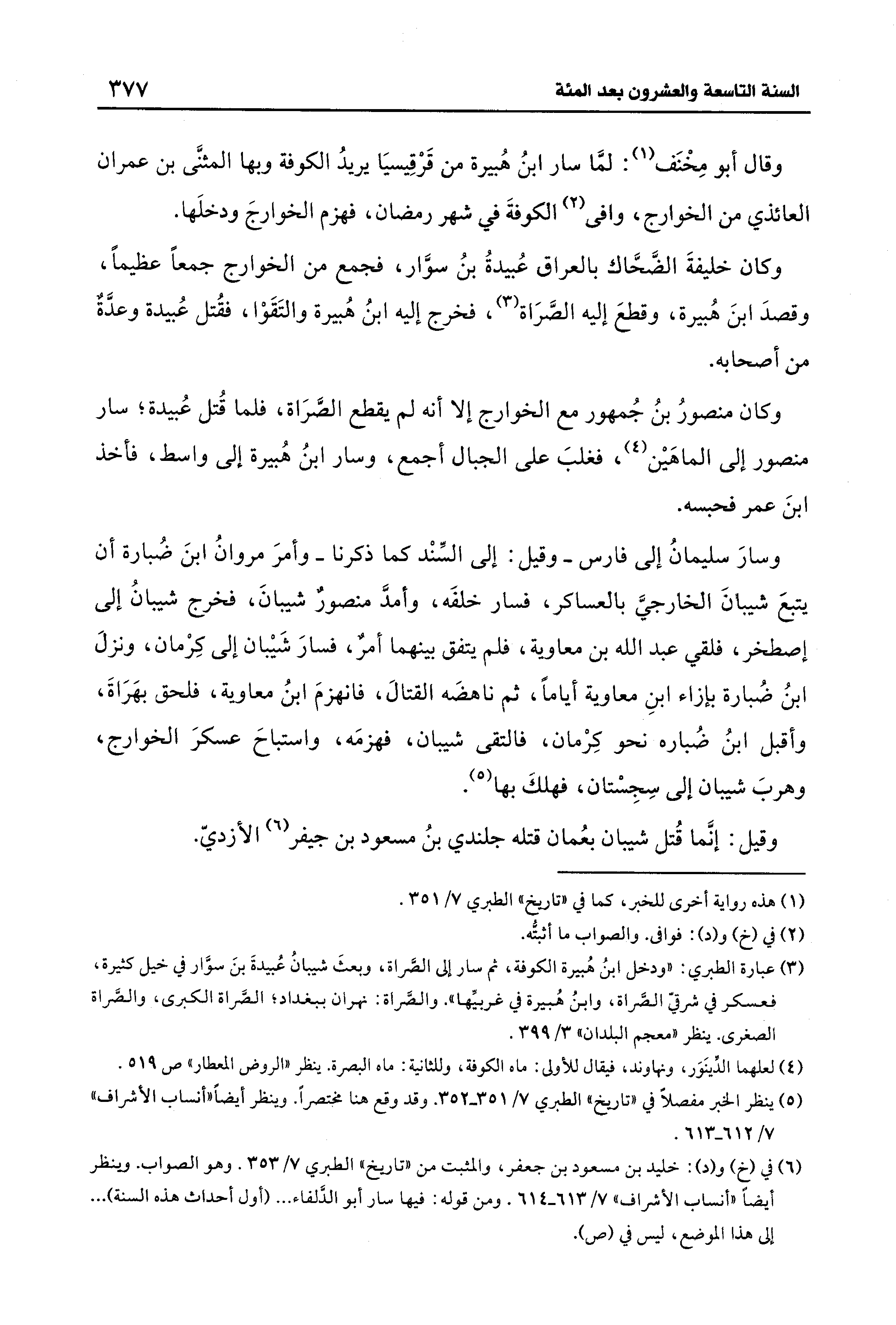(¬5) ينظر الخبر مفصلًا في "تاريخ" الطبري 7/ 351 - 352. وقد وقع هنا مختصرًا. وينظر أيضًا "أنساب الأشراف" 7/ 612 - 613.