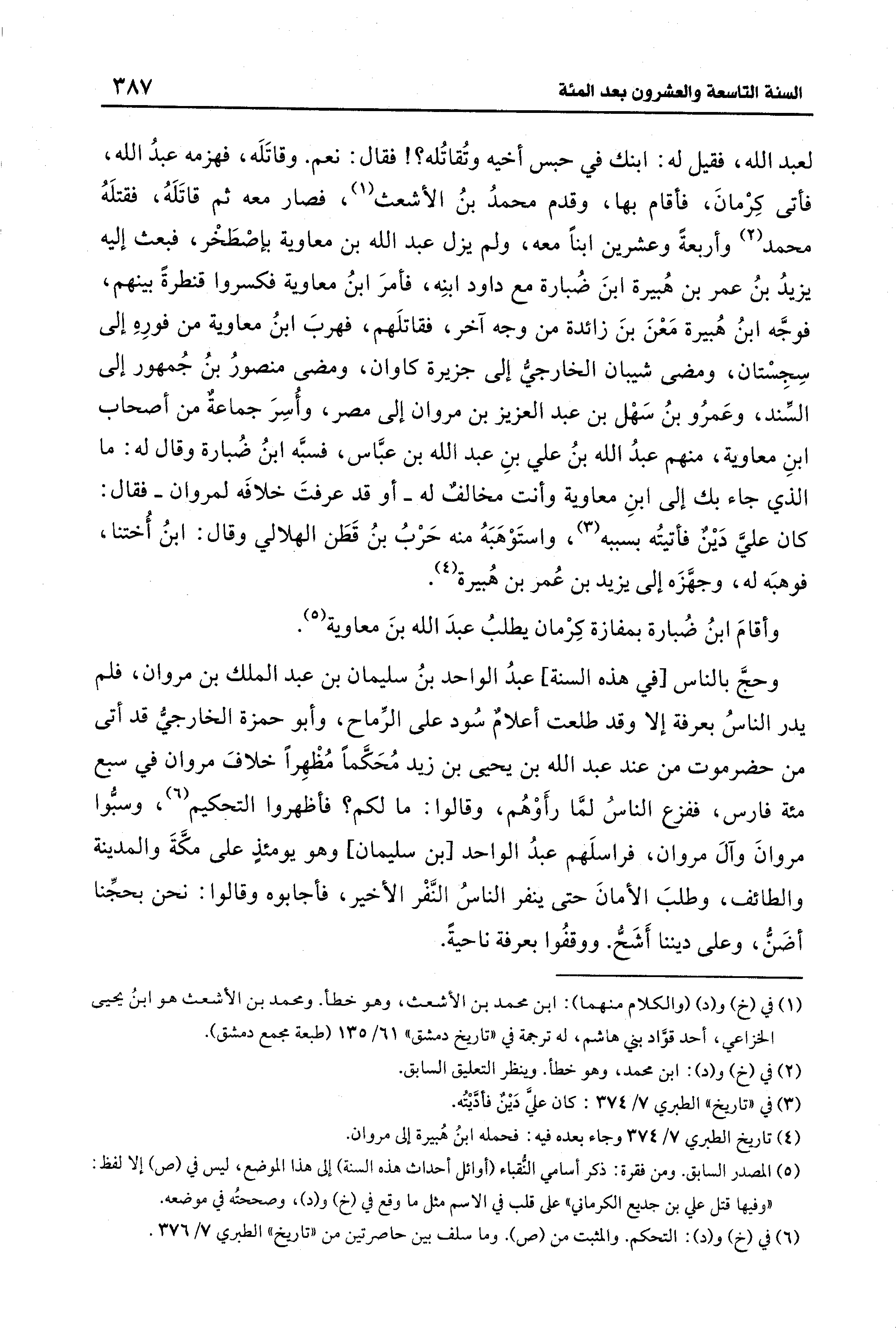 (¬6) في (خ) و (د): التحكم. والمثبت من (ص). وما سلف بين حاصرتين من "تاريخ" الطبري 7/ 376.