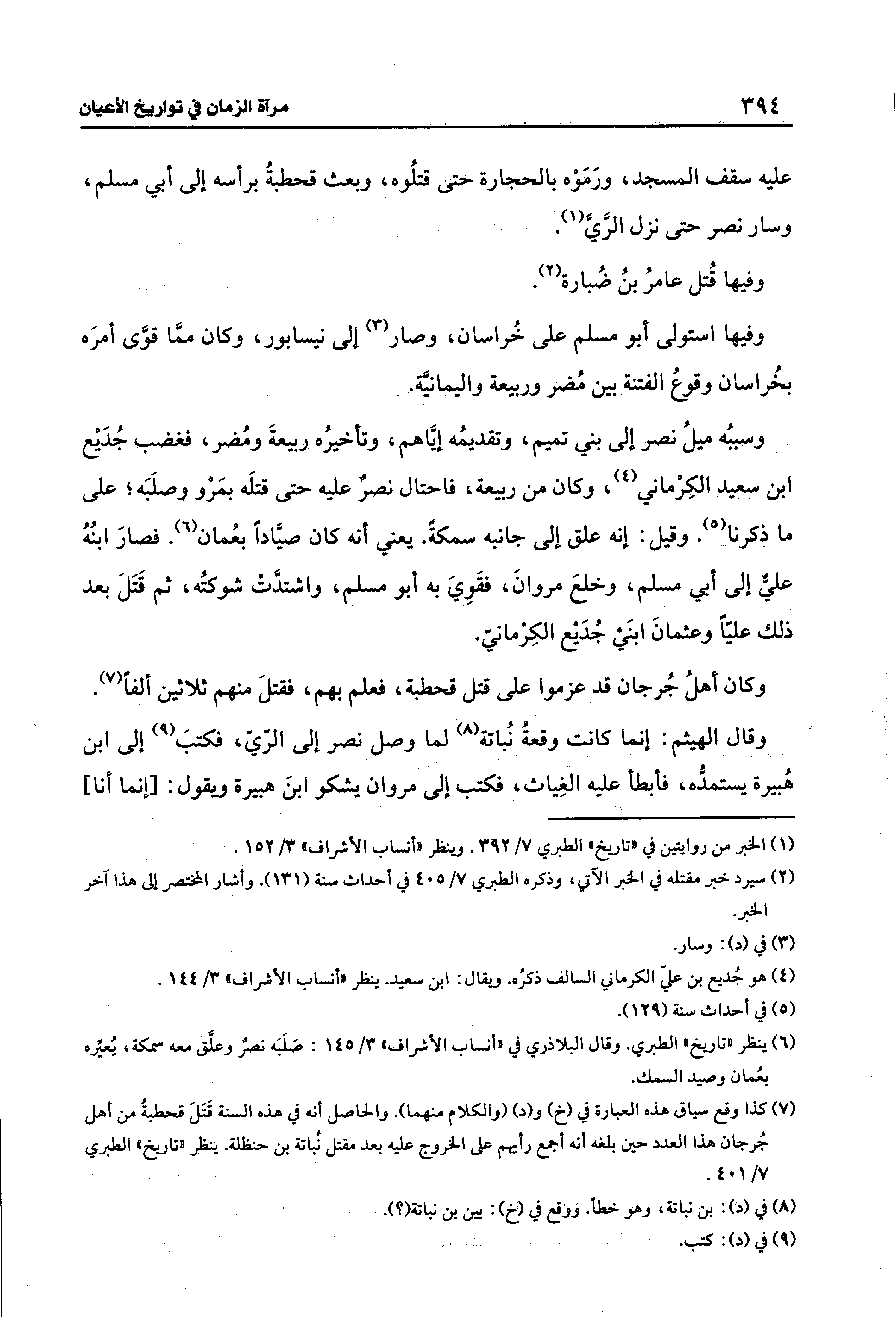 (¬7) كذا وقع سياق هذه العبارة في (خ) و (د) (والكلام منهما). والحاصل أنه في هذه السنة قَتَلَ قحطبةُ من أهل جُرجان هذا العدد حين بلغه أنه أجمع رأيهم على الخروج عليه بعد مقتل نُباتة بن حنظلة. ينظر "تاريخ" الطبري 7/ 401.