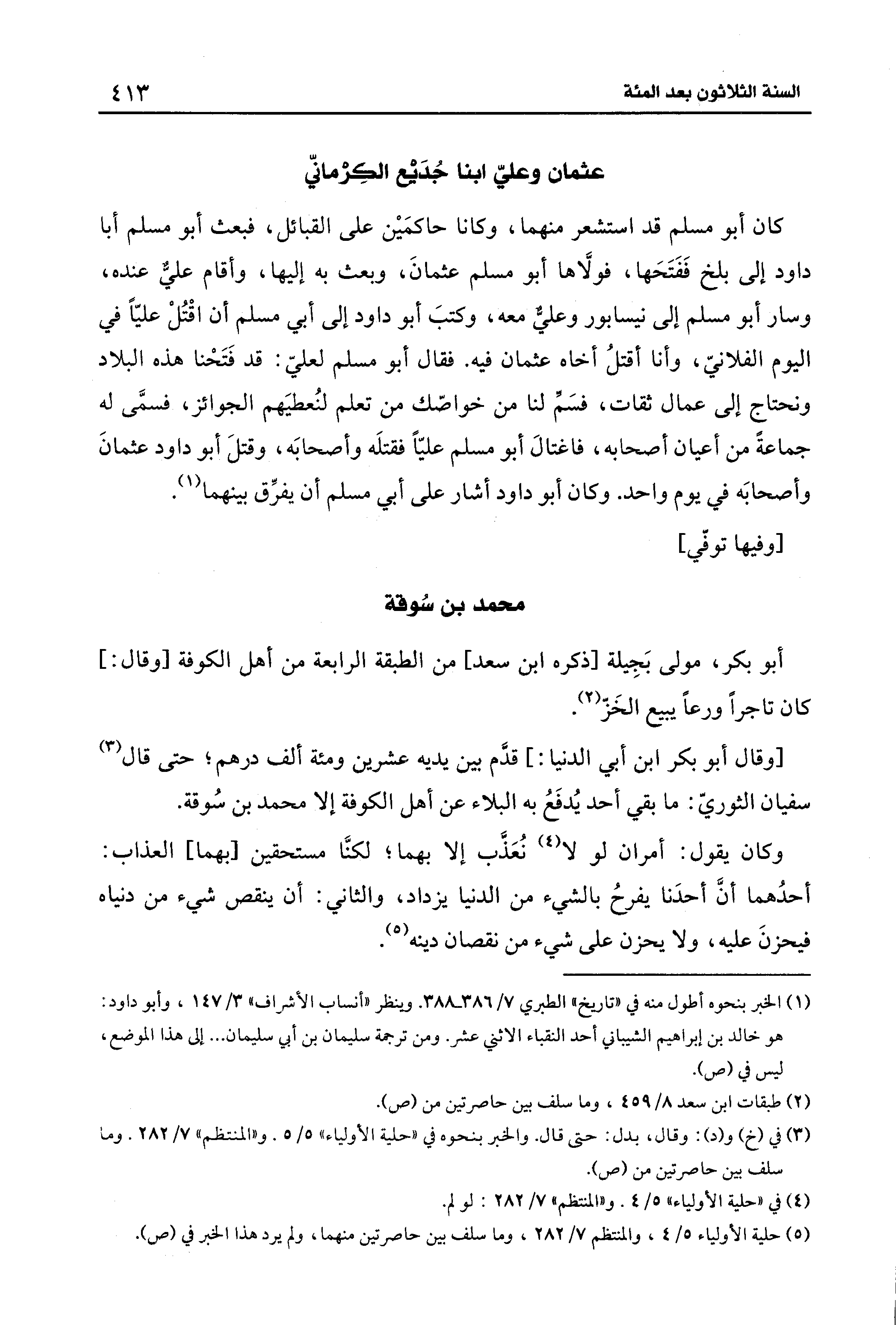 (¬5) حلية الأولياء 5/ 4، والمنتظم 7/ 282، وما سلف بين حاصرتين منهما، ولم يرد هذا الخبر في (ص).