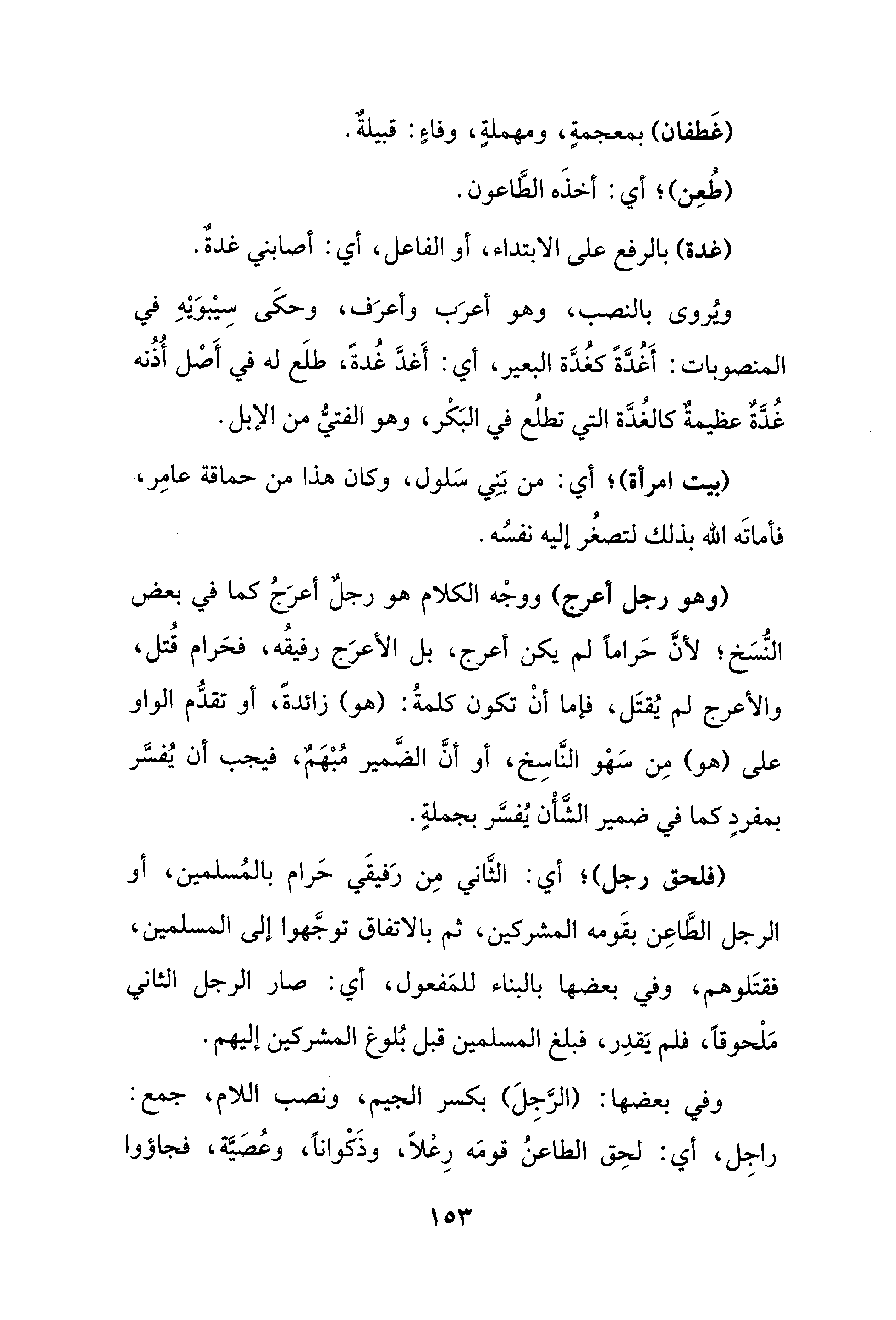 (وهو رجل أعرج) ووجْه الكلام هو رجلٌ أعرَجُ كما في بعض النُّسَخ؛ لأنَّ حَرامًا لم يكن أعرج، بل الأعرَج رفيقُه، فحَرام قُتل، والأعرج لم يُقتَل، فإما أنْ تكون كلمةُ: (هو) زائدةً، أو تقدُّم الواو على (هو) مِن سَهْو النَّاسِخ، أو أنَّ الضَّمير مُبْهَمٌ، فيجب أن يُفسَّر بمفردٍ كما في ضمير الشَّأْن يُفسَّر بجملةٍ.