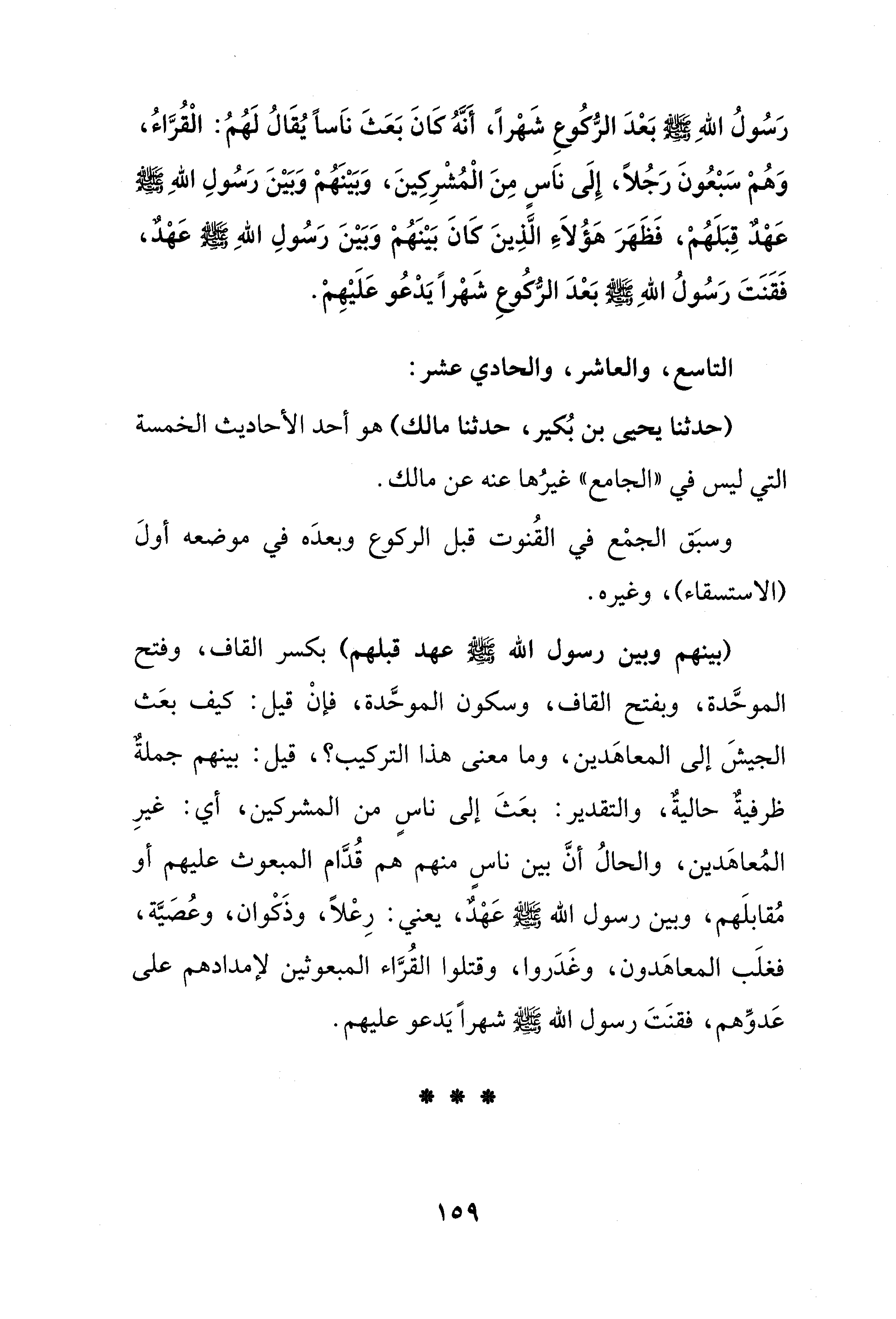 رَسُولُ اللهِ - صلى الله عليه وسلم - بَعْدَ الرُّكُوعِ شَهْرًا، أنَّهُ كَانَ بَعَثَ ناَسًا يُقَالُ لَهُمُ: الْقُرَّاءُ، وَهُمْ سَبْعُونَ رَجُلًا، إِلَى نَاسٍ مِنَ الْمُشْرِكِينَ، وَبَينَهُمْ وَبَيْنَ رَسُولِ اللهِ - صلى الله عليه وسلم - عَهْدٌ قِبَلَهُمْ، فَظَهَرَ هَؤُلاَءِ الَّذِينَ كَانَ بَيْنَهُمْ وَبَيْنَ رَسُولِ اللهِ - صلى الله عليه وسلم - عَهْدٌ، فَقَنَتَ رَسُولُ اللهِ - صلى الله عليه وسلم - بَعْدَ الرُّكُوعِ شَهْرًا يَدْعُو عَلَيْهِمْ.