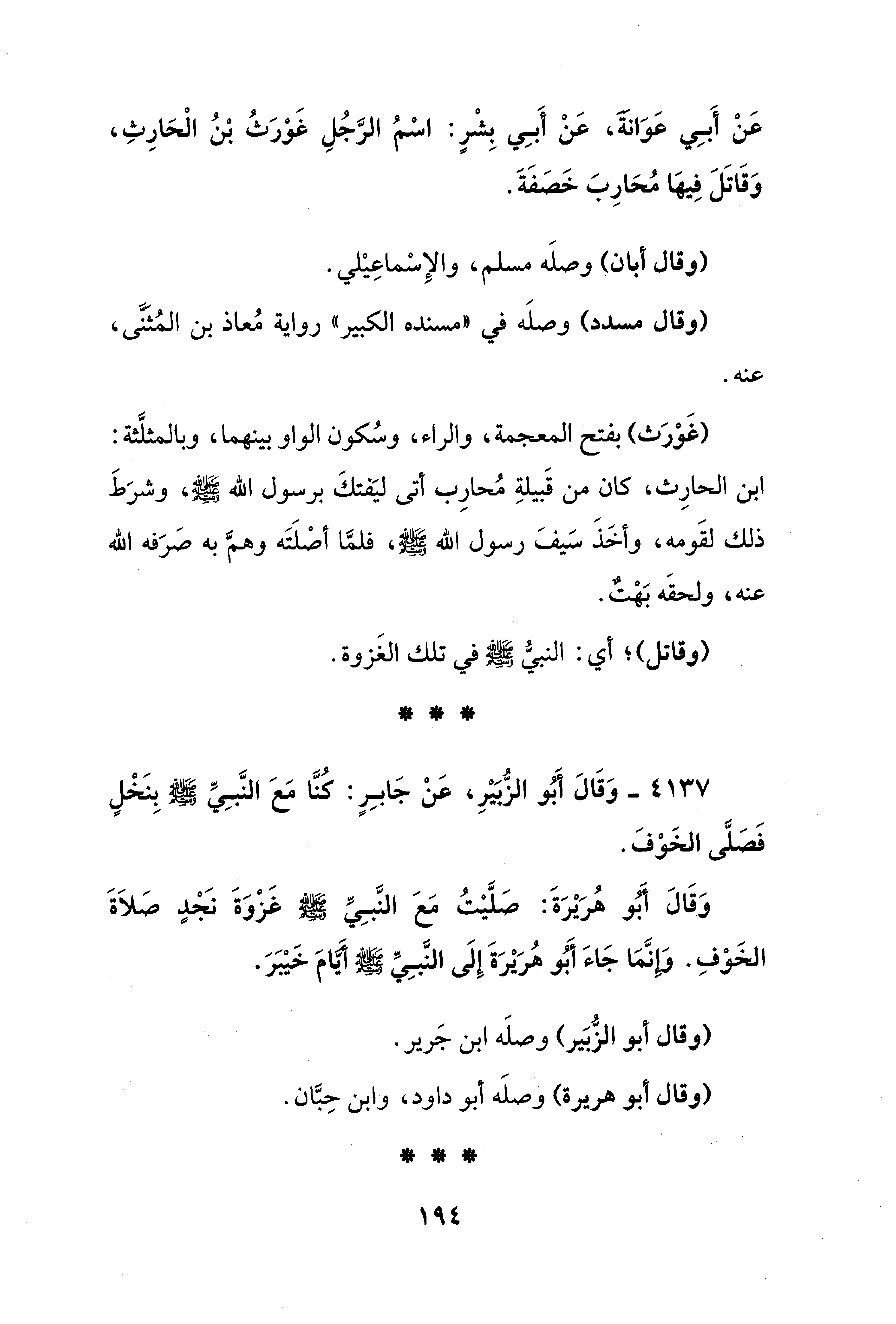 4137 - وَقَالَ أَبُو الزُّبَيْرِ، عَنْ جَابِرٍ: كُنَّا مَعَ النَّبِيِّ - صلى الله عليه وسلم - بِنَخْلٍ فَصَلَّى الخَوْفَ.