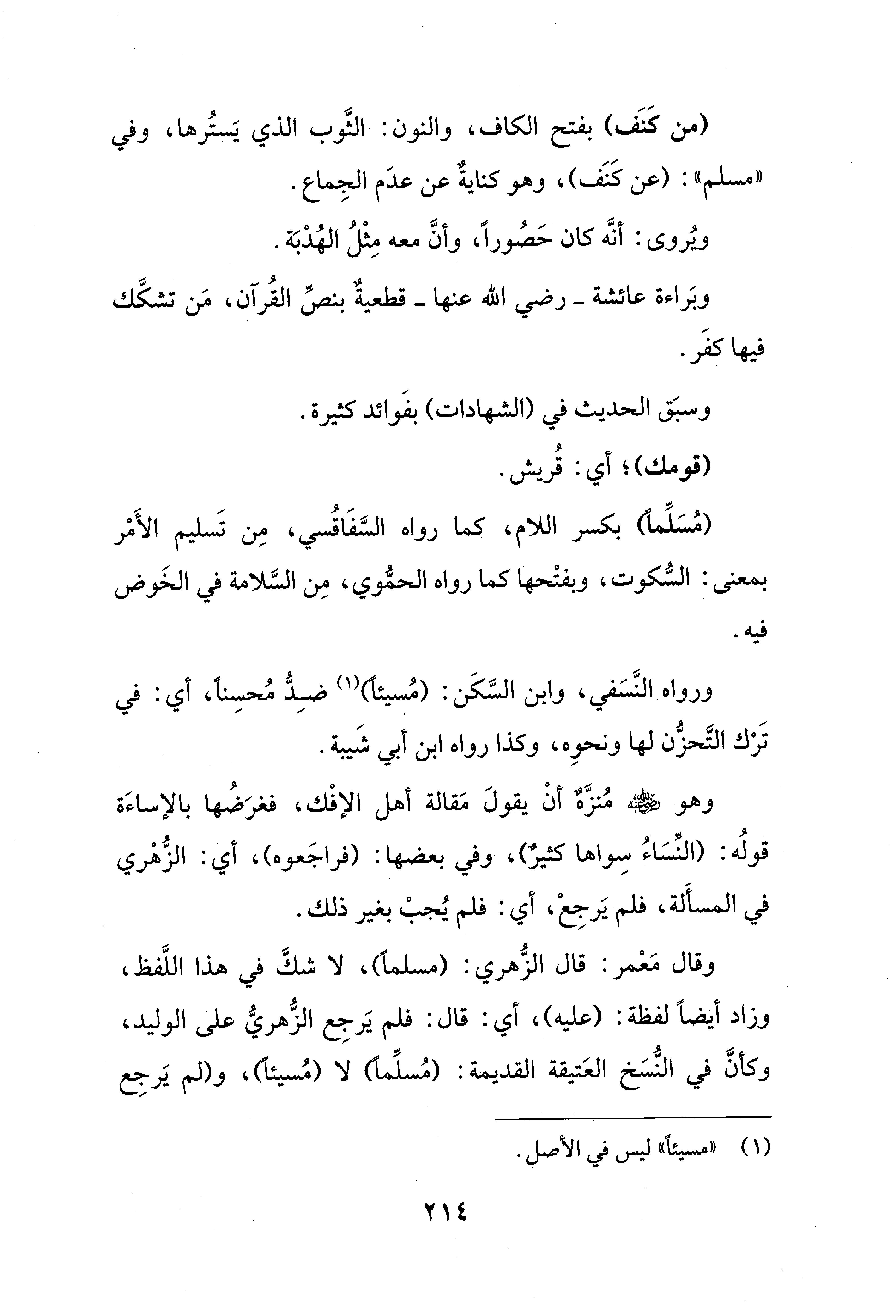 وقال مَعْمر: قال الزُّهري: (مسلمًا)، لا شكَّ في هذا اللَّفظ، وزاد أيضًا لفظة: (عليه)، أي: قال: فلم يَرجِع الزُّهريُّ على الوليد، وكأنَّ في النُّسَخ العَتيقة القديمة: (مُسلِّمًا) لا (مُسيئًا)، و (لم يَرجِع