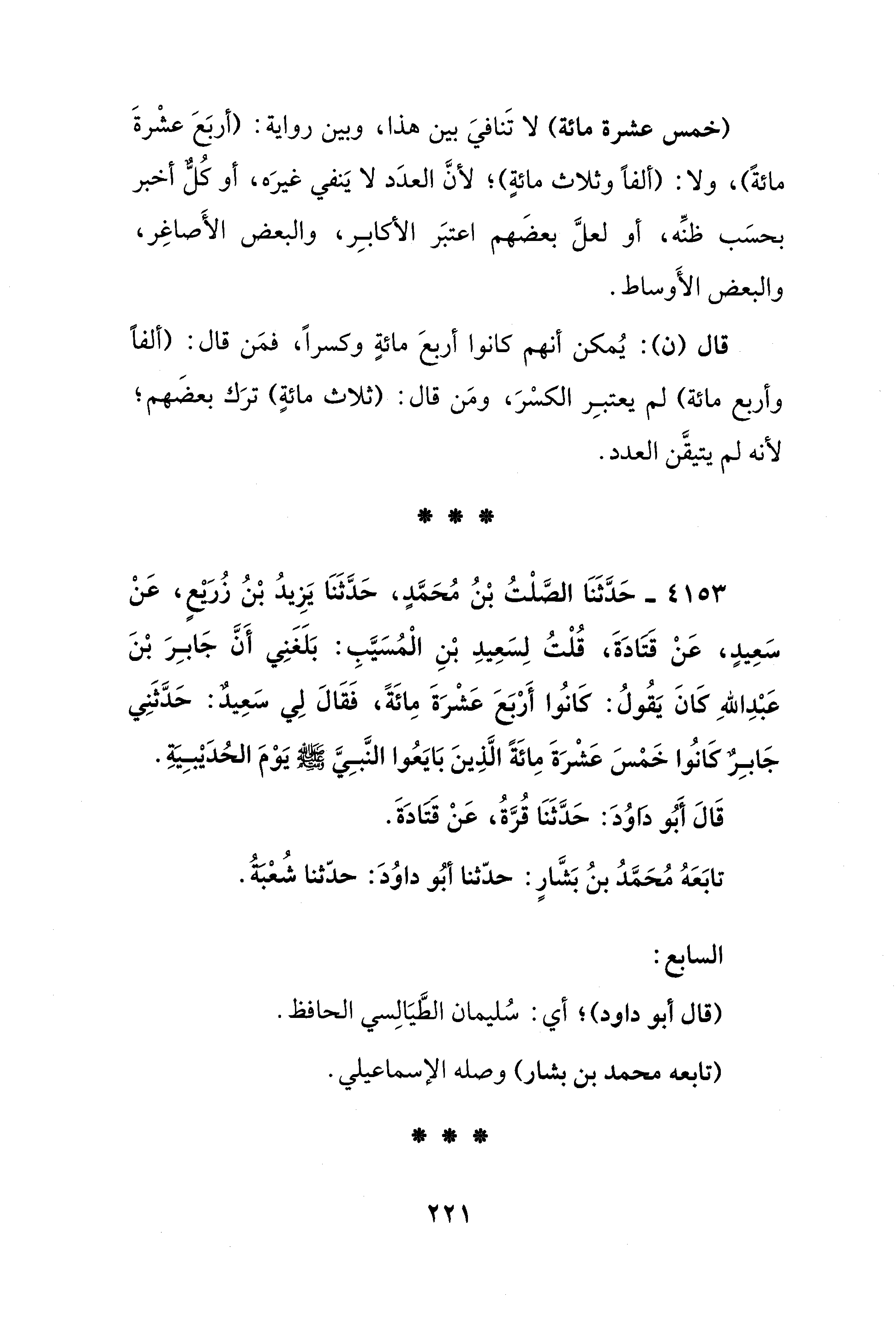قال (ن): يُمكن أنهم كانوا أربعَ مائةٍ وكسرًا، فمَن قال: (ألفًا وأربع مائة) لم يعتبِر الكسْرَ، ومَن قال: (ثلاث مائةٍ) ترَك بعضَهم؛ لأنه لم يتيقَّن العدد.