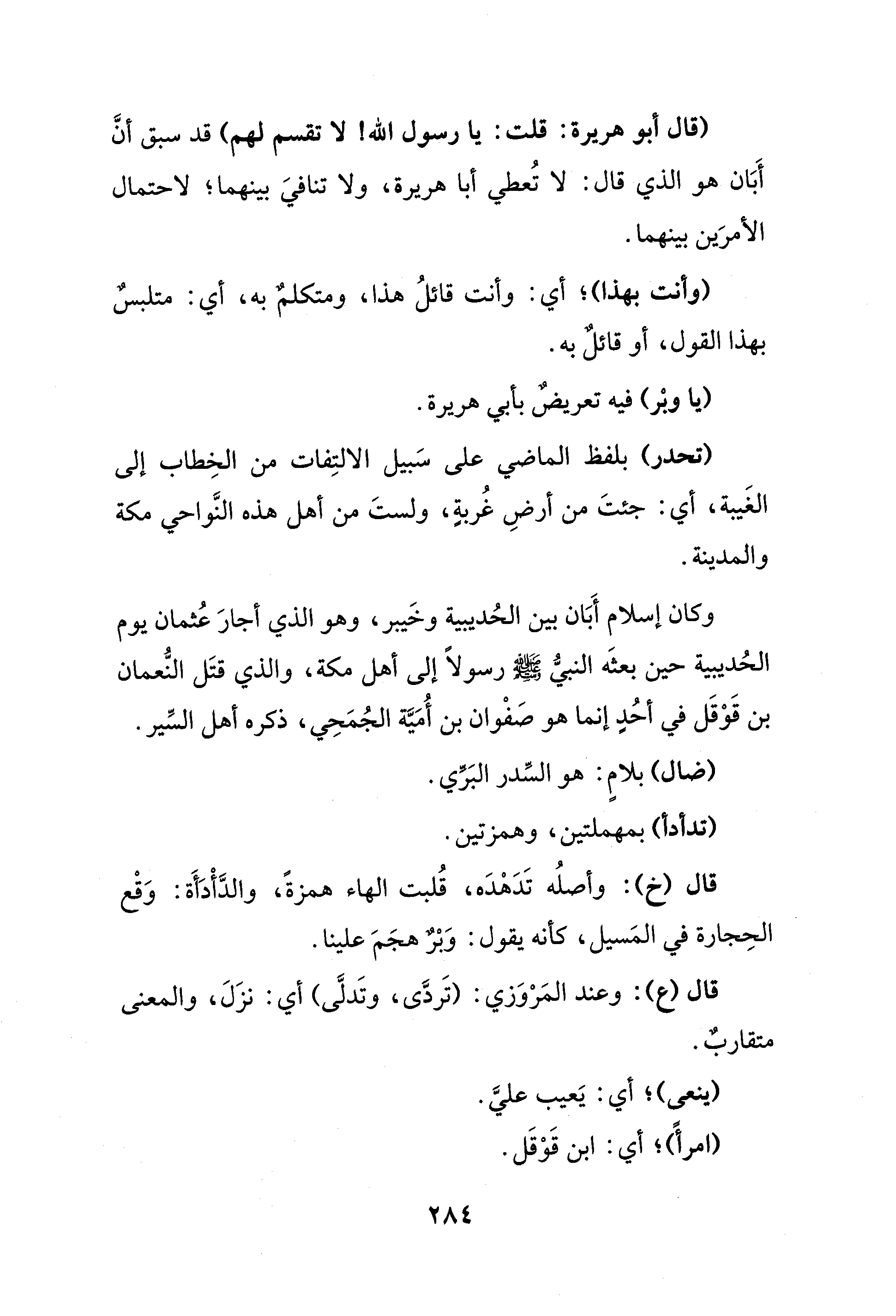 (قال أبو هريرة: قلت: يا رسول الله! لا تقسم لهم) قد سبق أنَّ أَبَان هو الذي قال: لا تُعطي أبا هريرة، ولا تنافيَ بينهما؛ لاحتمال الأمرَين بينهما.