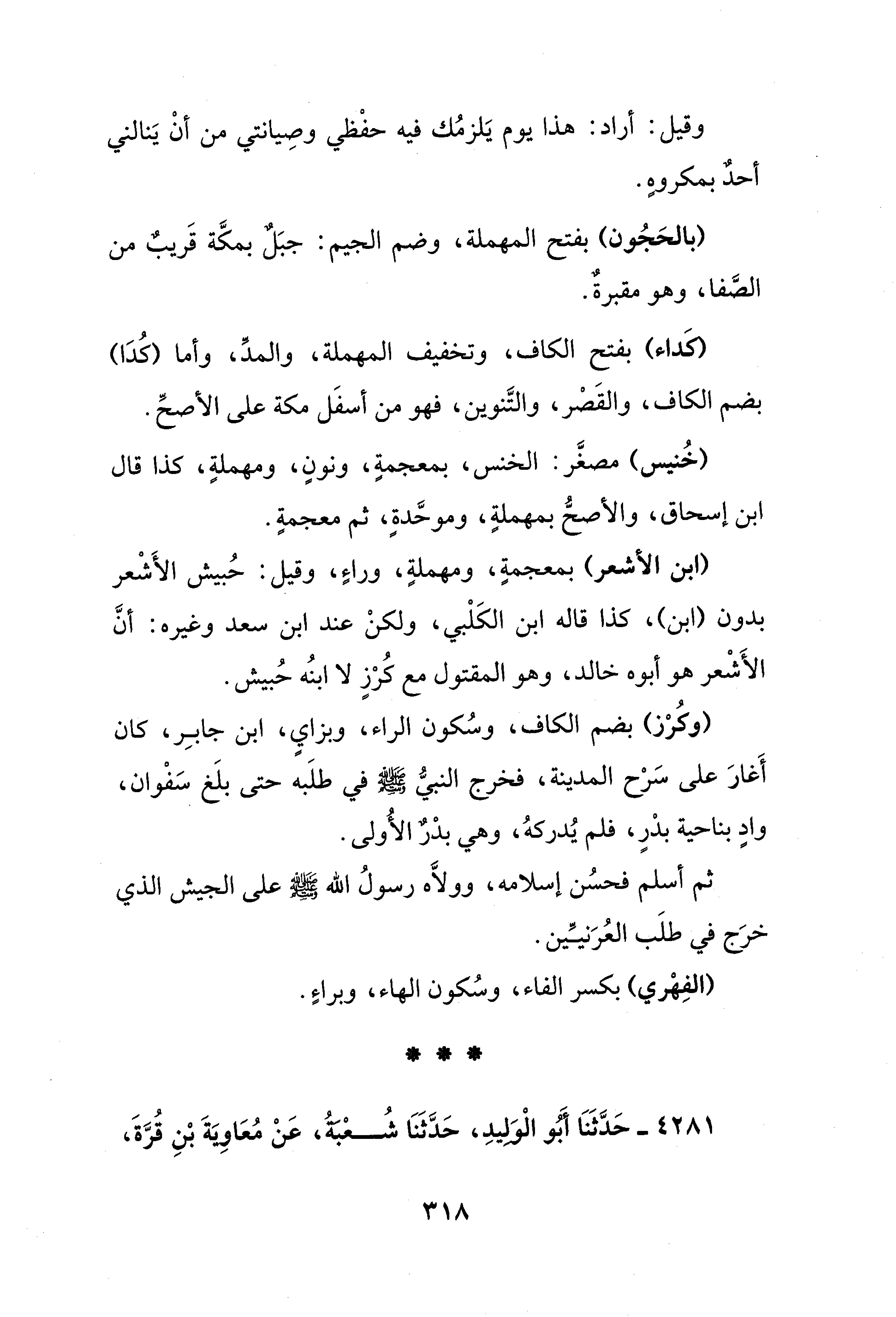 (ابن الأشعر) بمعجمةٍ، ومهملةٍ، وراءٍ، وقيل: حُبيش الأَشْعر بدون (ابن)، كذا قاله ابن الكَلْبي، ولكنْ عند ابن سعد وغيره: أنَّ الأَشْعر هو أبوه خالد، وهو المقتول مع كُرْزٍ لا ابنُه حُبيش.