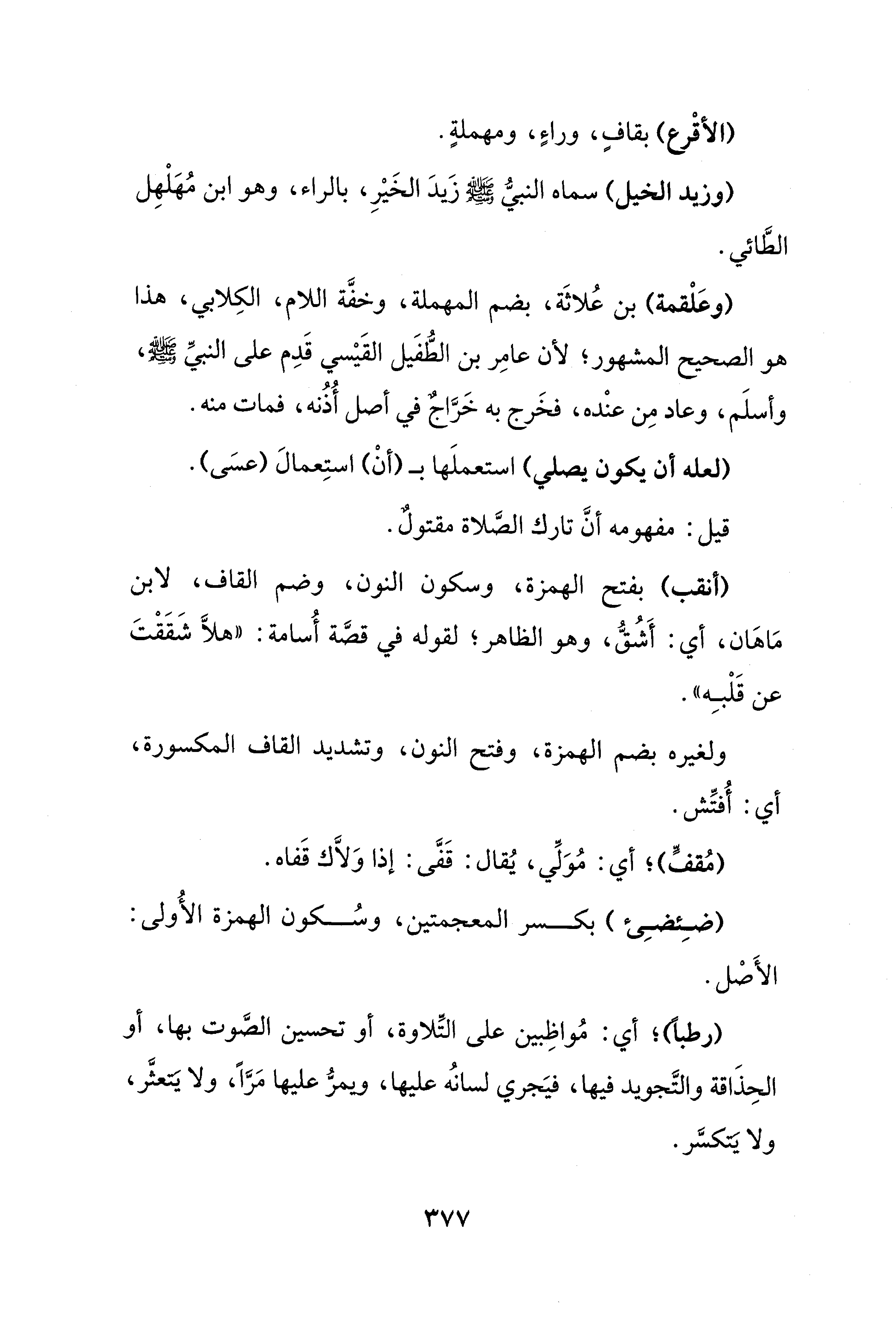 (وعَلْقمة) بن عُلاثَة، بضم المهملة، وخفَّة اللام، الكِلابي، هذا هو الصحيح المشهور؛ لأن عامِر بن الطُّفَيل القَيْسيّ قَدِم على النبيِّ - صلى الله عليه وسلم -، وأسلَم، وعاد مِن عنْده، فخَرج به خَرَّاجٌ في أصل أُذُنه، فمات منه.