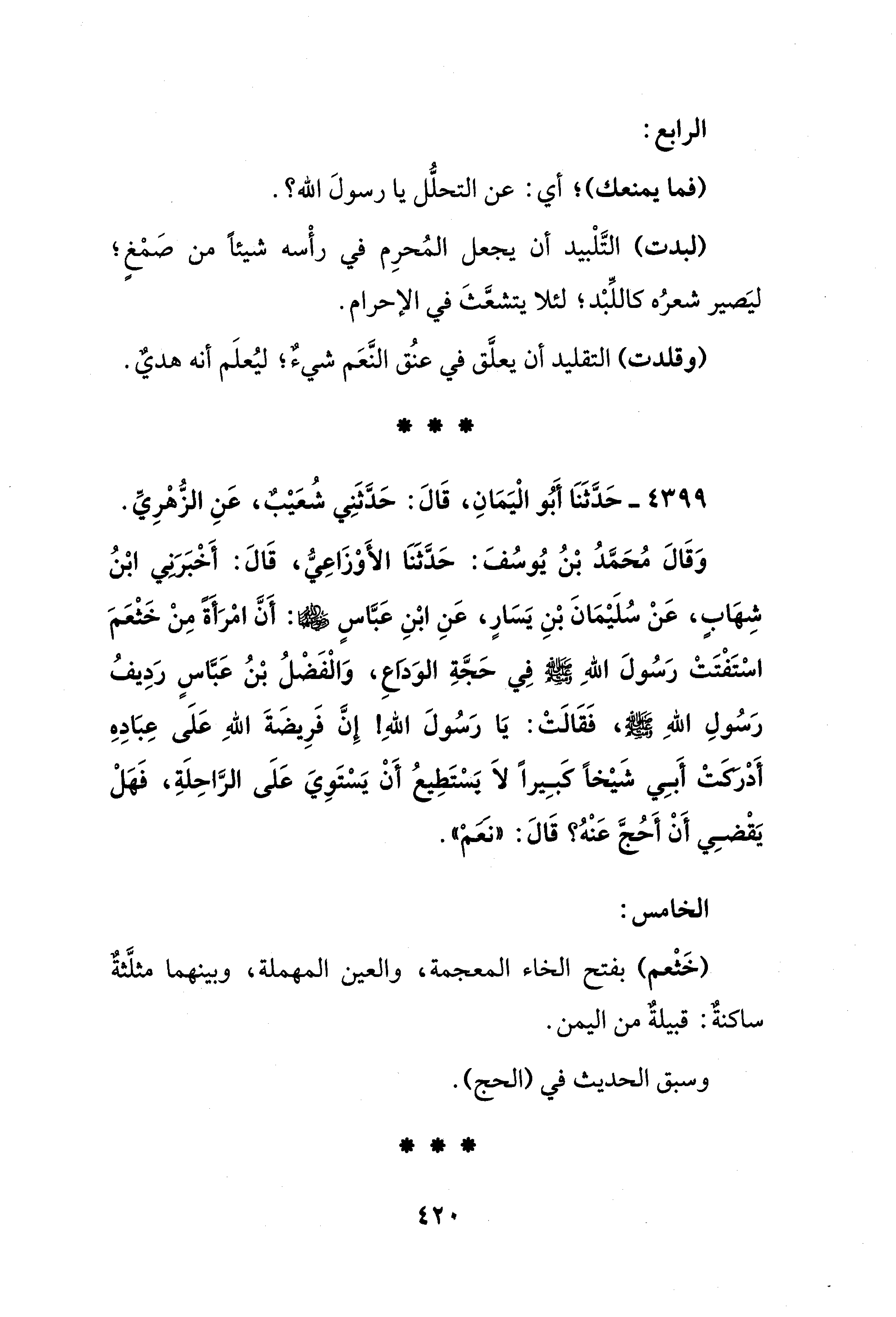 4399 - حَدَّثَنَا أَبُو الْيَمَانِ، قَالَ: حَدَّثَنِي شُعَيب، عَنِ الزُّهْرِيِّ.