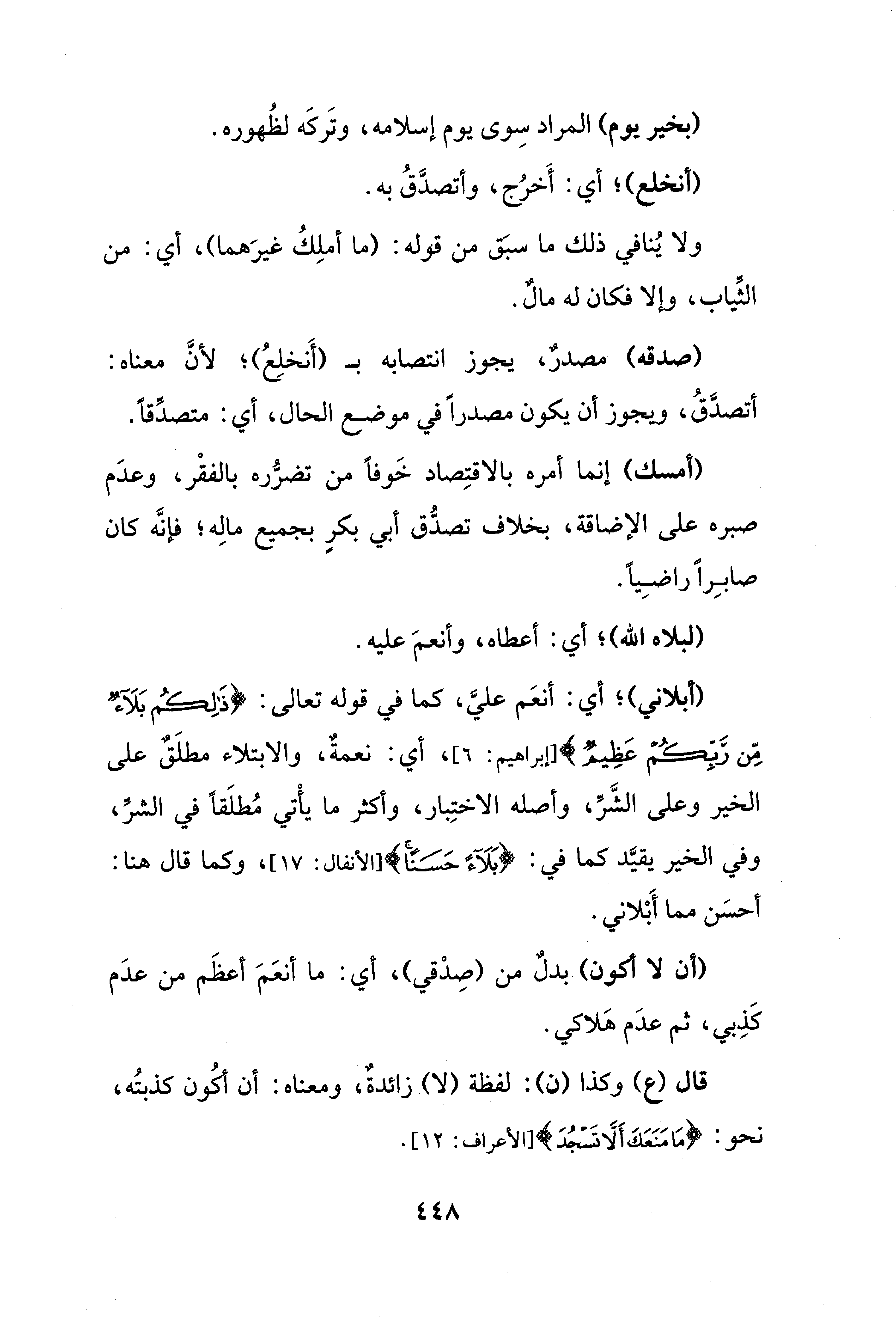 (أبلاني)؛ أي: أنعَم عليَّ، كما في قوله تعالى: {ذَلِكُمْ بَلَاءٌ مِنْ رَبِّكُمْ عَظِيمٌ} [إبراهيم: 6] أي: نعمةٌ، والابتلاء مطلَقٌ على الخير وعلى الشَّرِّ، وأصله الاختِبار، وأكثر ما يأْتي مُطلَقًا في الشرِّ، وفي الخير يقيَّد كما في: {بَلَاءً حَسَنًا} [الأنفال: 17] وكما قال هنا: أحسَن مما أَبْلاني.