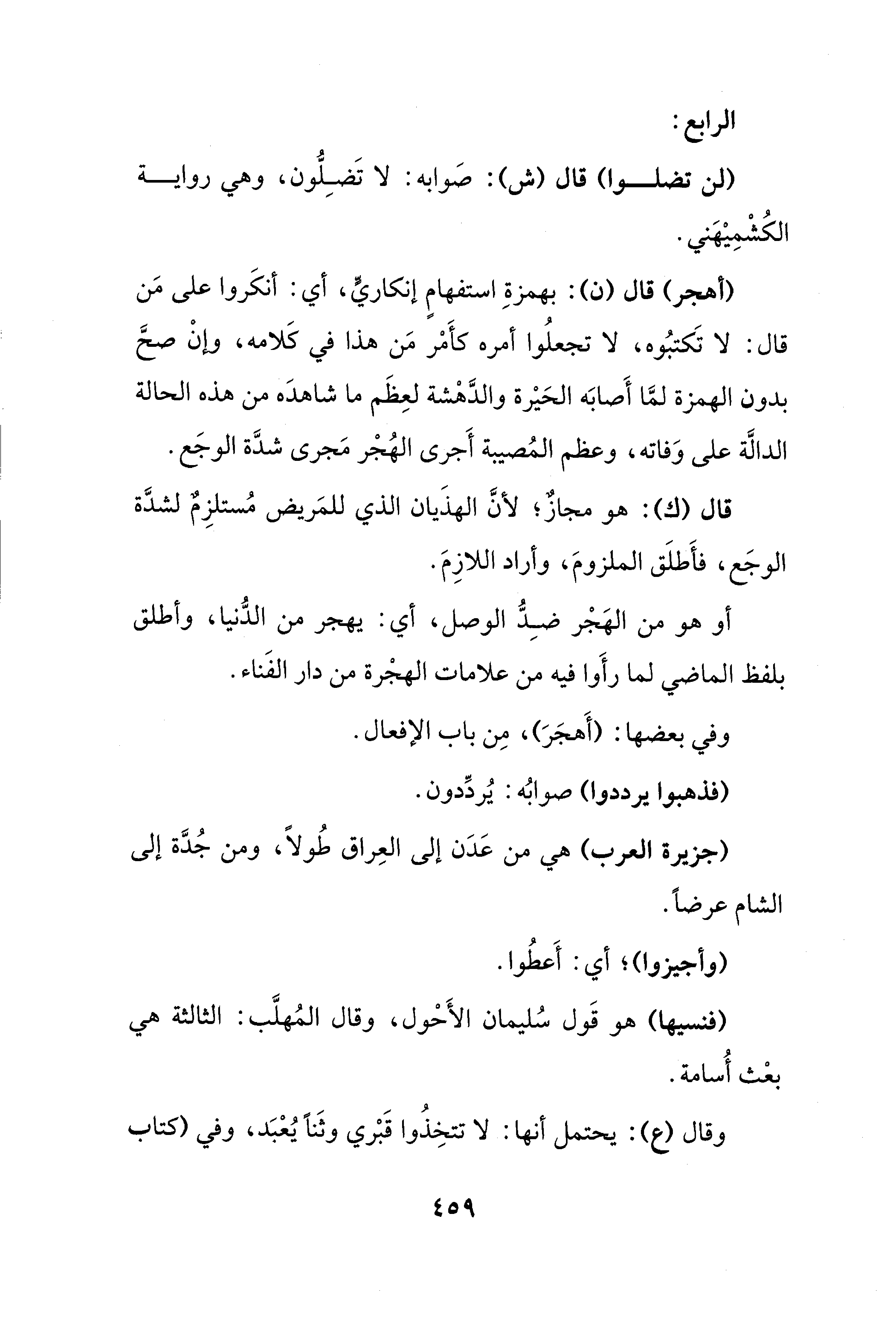 (أهجر) قال (ن): بهمزةِ استفهامٍ إنكاريٍّ، أي: أنكَروا على مَن قال: لا تَكتبُوه، لا تجعلُوا أمره كأَمْر مَن هذا في كَلامه، وإنْ صحَّ بدون الهمزة لمَّا أَصابَه الحَيْرة والدَّهْشة لعِظَم ما شاهدَه من هذه الحالة الدالَّة على وَفاته، وعظم المُصيبة أَجرى الهُجْر مَجرى شدَّة الوجَع.
