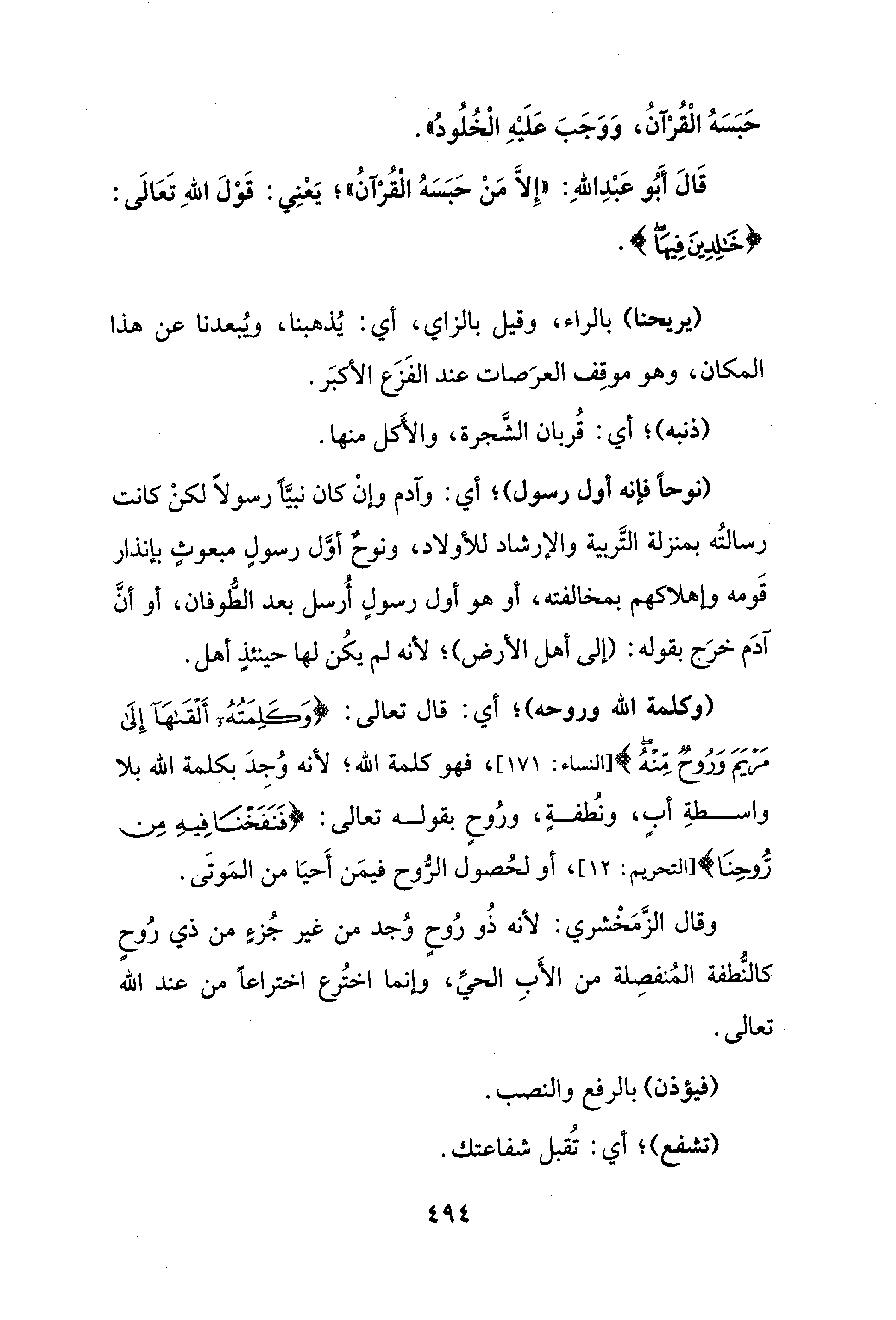 حَبَسَهُ الْقُرْآنُ، وَوَجَبَ عَلَيْهِ الْخُلُودُ".