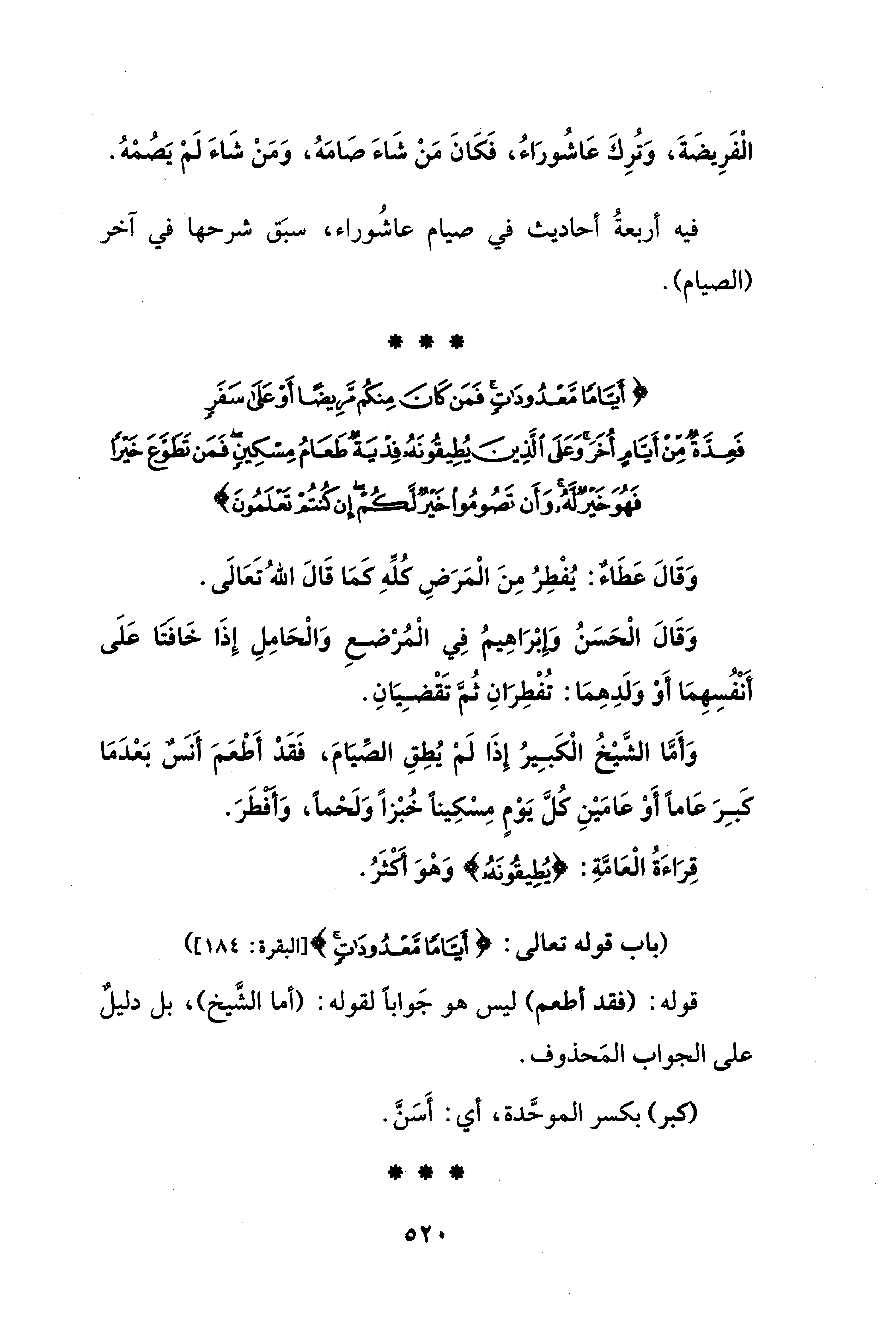 {أَيَّامًا مَعْدُودَاتٍ فَمَنْ كَانَ مِنْكُمْ مَرِيضًا أَوْ عَلَى سَفَرٍ فَعِدَّةٌ مِنْ أَيَّامٍ أُخَرَ وَعَلَى الَّذِينَ يُطِيقُونَهُ فِدْيَةٌ طَعَامُ مِسْكِينٍ فَمَنْ تَطَوَّعَ خَيْرًا فَهُوَ خَيْرٌ لَهُ وَأَنْ تَصُومُوا خَيْرٌ لَكُمْ إِنْ كُنْتُمْ تَعْلَمُونَ}