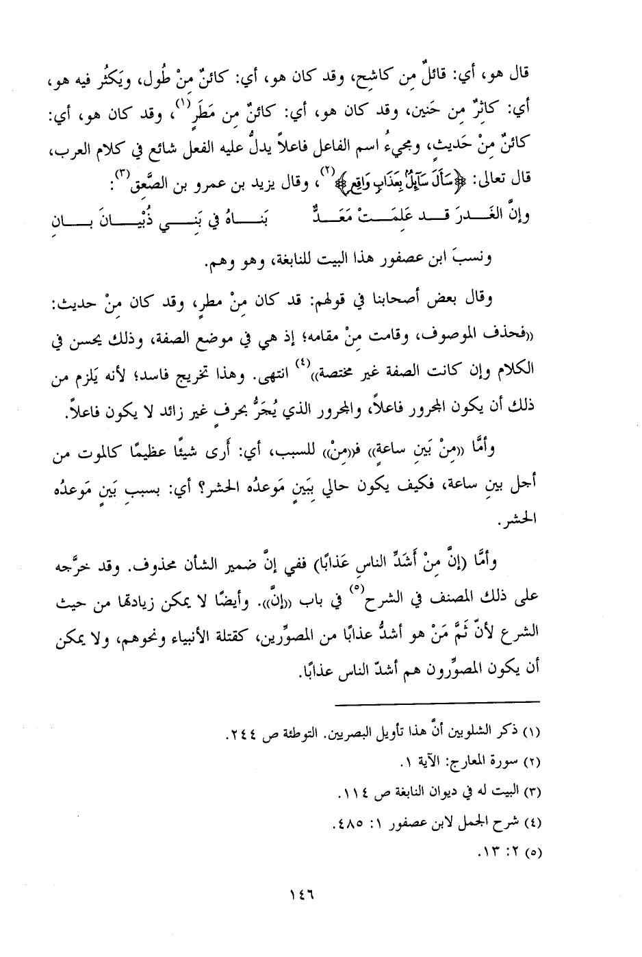 قال هو، أي: قائل من كاشح، وقد كان هو، أي: كائن من طول، ويكثر فيه هو، أي: كاثر من حنين، وقد كان هو، أي: كائن من مطر، وقد كان هو، أي: كائن من حديث، ومجيء اسم الفاعل فاعلاً يدل عليه الفعل شائع في كلام العرب، قال تعالى: (سَأَلَ سَائِلٌ بِعَذَابٍ وَاقِعٍ)، وقال يزيد بن عمرو بن الصعف:
