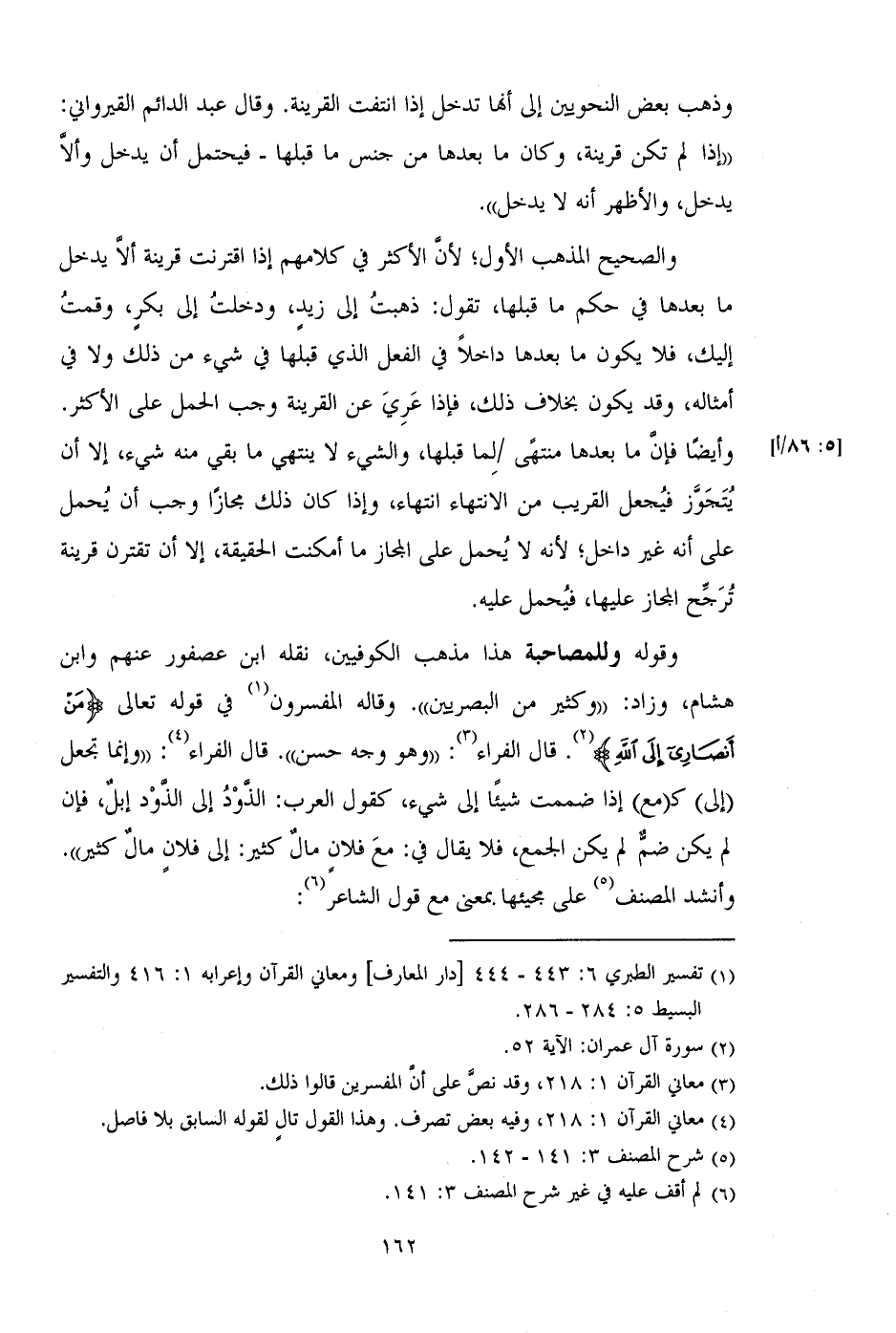 وذهب بعض النحويين إلى أنها تدخل إذا انتفت القرينة. وقال عبد الدائم القيرواني: "إذا لم تكن قرينة، وكان ما بعدها من جنس ما قبلها - فيحتمل أن يدخل وألا يدخل، والأظهر أنه لا يدخل".