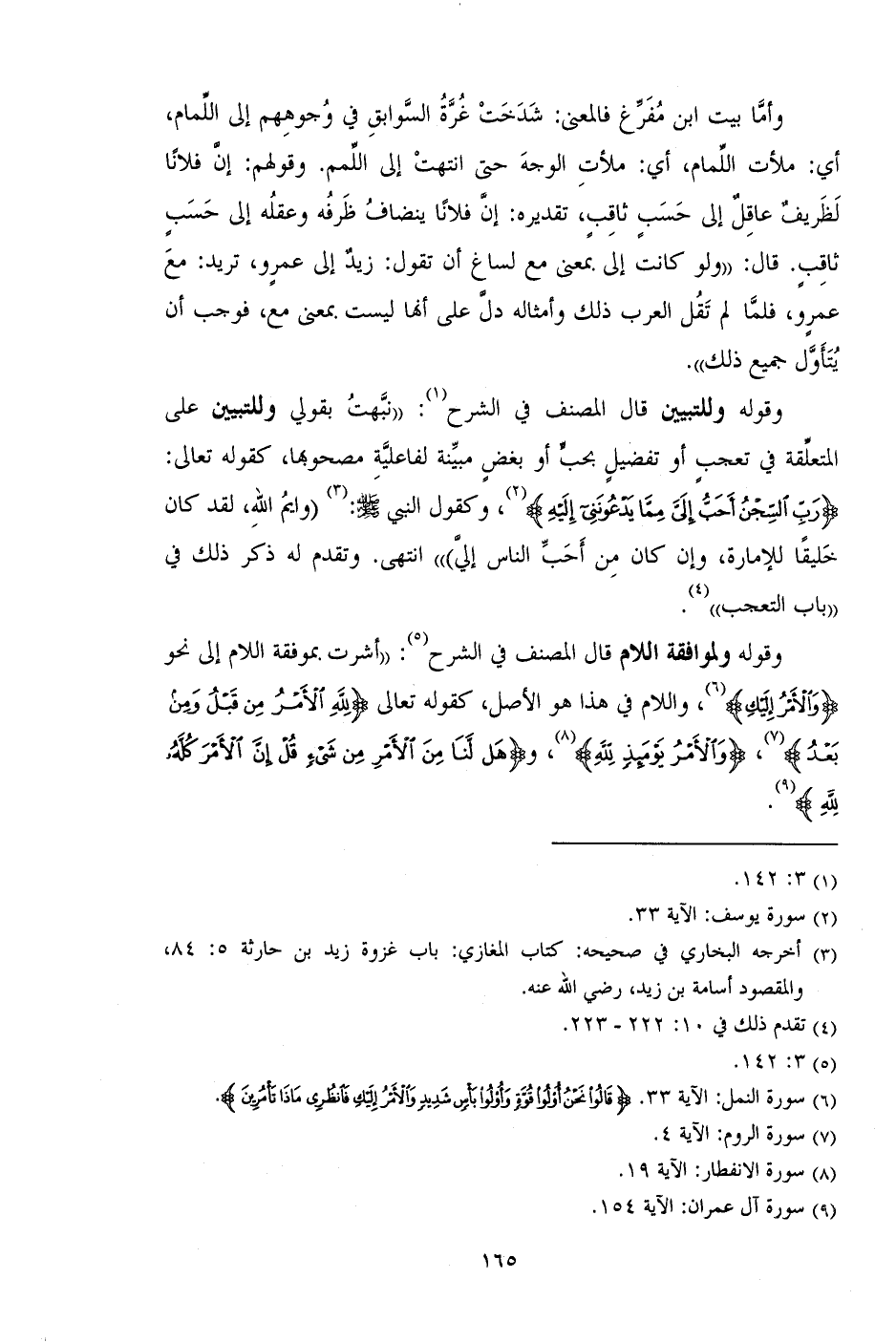 وقوله وللتبيين قال المصنف في الشرح: "نبهت بقولي وللتبيين على المتعلقة في تعجب أو تفضيل بحب أو بغض مبينة لفاعلية مصحوبها، كقوله تعالى: (قَالَ رَبِّ السِّجْنُ أَحَبُّ إِلَيَّ مِمَّا يَدْعُونَنِي إِلَيْهِ)، وكقول النبي صلى الله عليه وسلم: (وايم الله، لقد كان خليفاً للإمارة، وإن كان من أحب الناس إلي) " انتهى. وتقدم له ذكر ذلك في "باب التعجب".