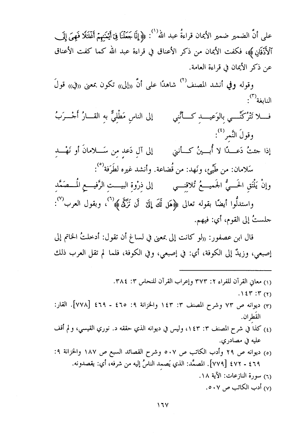 وقوله وفي أنشد المصنف شاهداً على أن "إلى" تكون بمعنى "في" قول النابغة: