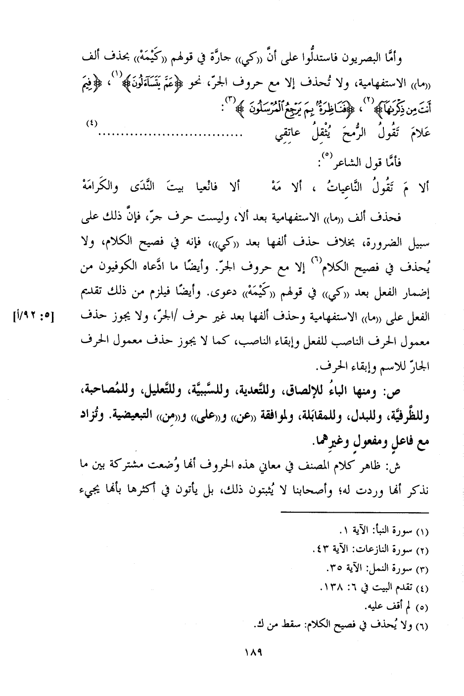 فحذف ألف "ما" الاستفهامية بعد ألا، وليست حرف جر، فإن ذلك على سبيل الضرورة، بخلاف حذف ألفها بعد "كي"، فإنه في فصيح الكلام، ولا يحذف في فصيح الكلام إلا مع حروف الجر. وأيضاً ما ادعاه الكوفيون من إضمار الفعل بعد "كي" في قولهم "كيمه" دعوى. وأيضاً فيلزم من ذلك تقديم الفعل على "ما" الاستفهامية وحذف ألفها بعد غير حرف /الجر، ولا يجوز حذف معمول الحرف الناصب للفعل وإبقاء الناصب، كما لا يجوز حذف معمول الحرف الجار للاسم وإبقاء الحرف.