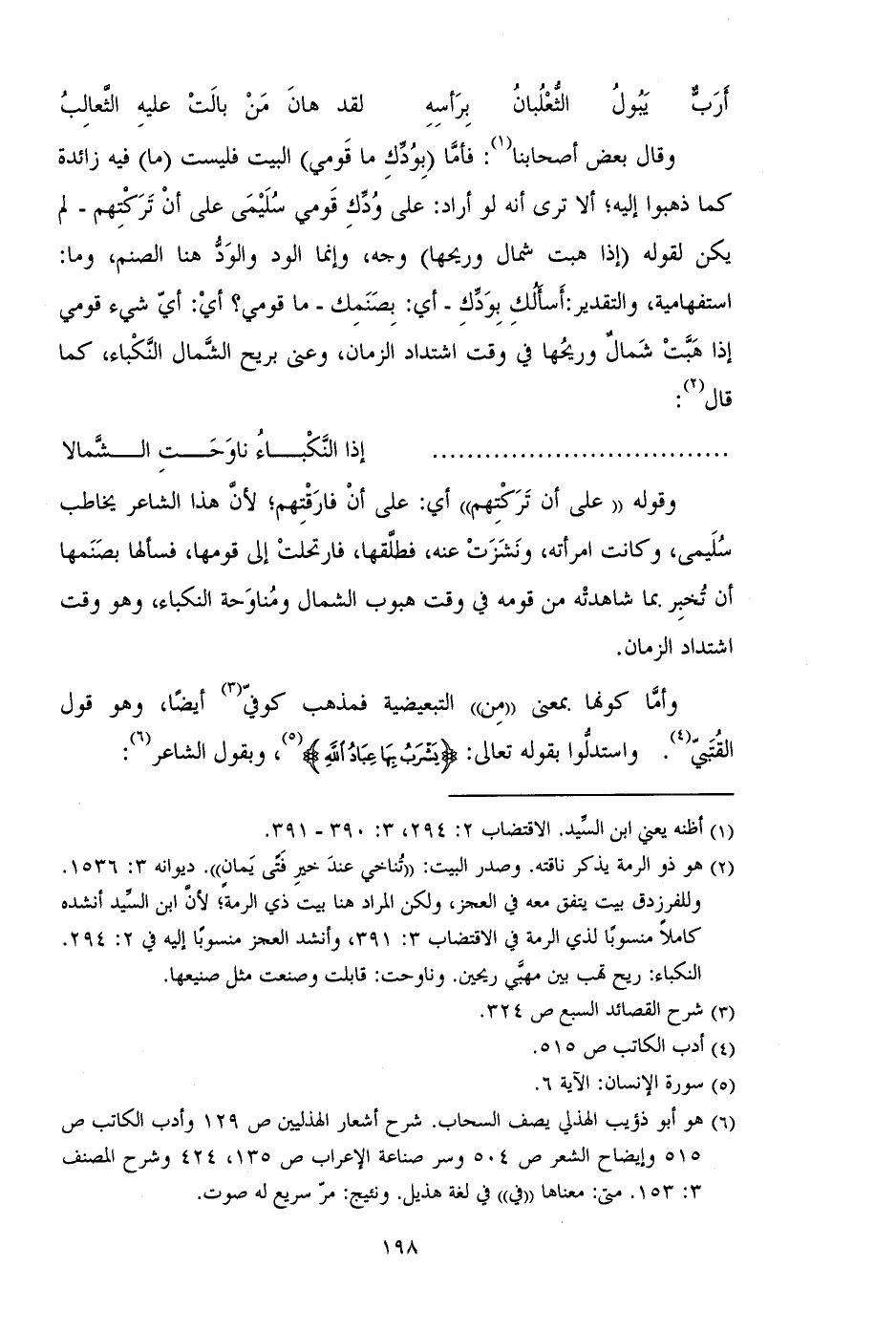 وأما كونها بمعنى "من" التبعيضية فمذهب كوفي أيضاً، وهو قول القتبي. واستدلوا بقوله تعالى: (يَشْرَبُ بِهَا عِبَادُ اللَّهِ)، وبقول الشاعر: