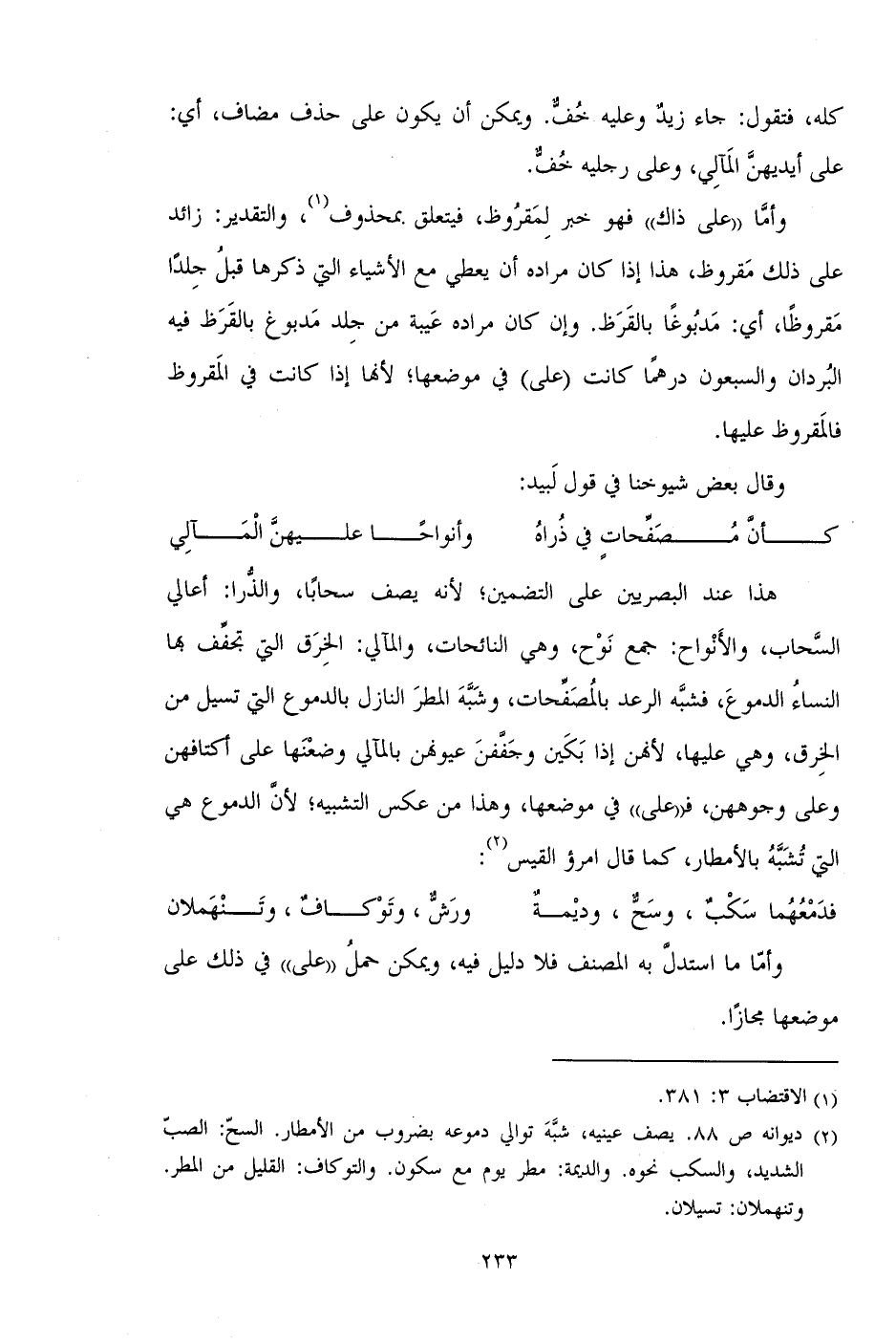 وأما ما استدل به المصنف فلا دليل فيه، ويمكن حمل "على" في ذلك على موضعها مجازا.
