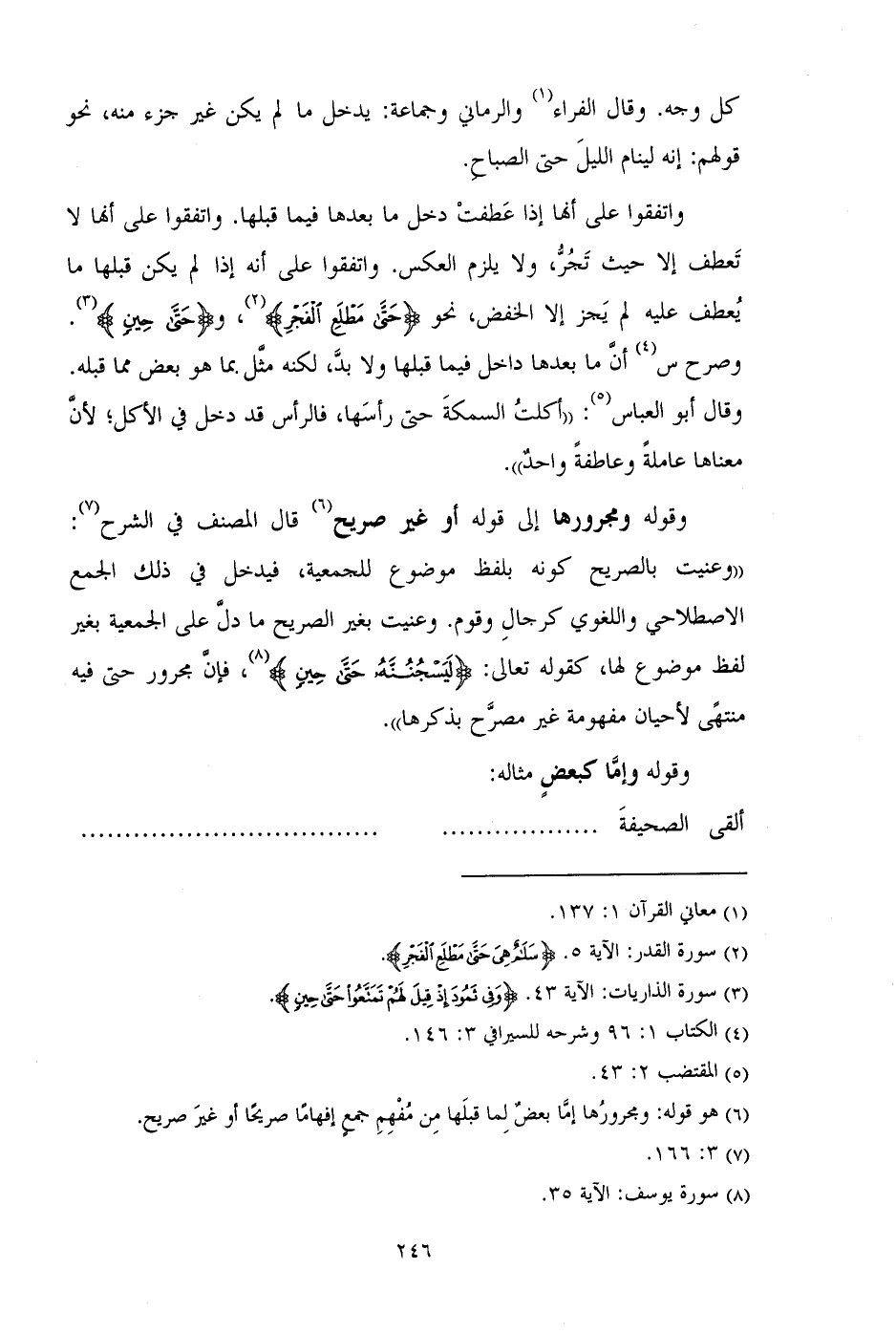 وقوله ومجرورها إلى قوله أو غير صريح قال المصنف في الشرح:
