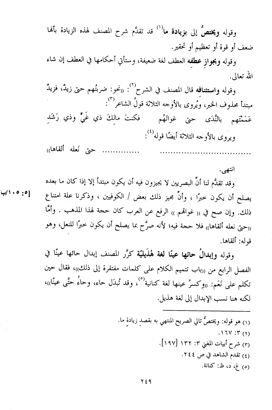 وقوله وإبدال حائها عينًا لغة هذيلية كرر المصنف إبدال حائها عينًا في الفصل الرابع من "باب تتميم الكلام على كلمات مفتقرة إلى ذلك"، فقال حين تكلم على نعم: "وكسر عينها لغة كنانية، وقد تبدل حاء، وحاء حتى عينًا"، لكنه هنا نسب الإبدال إلى لغة هذيل.